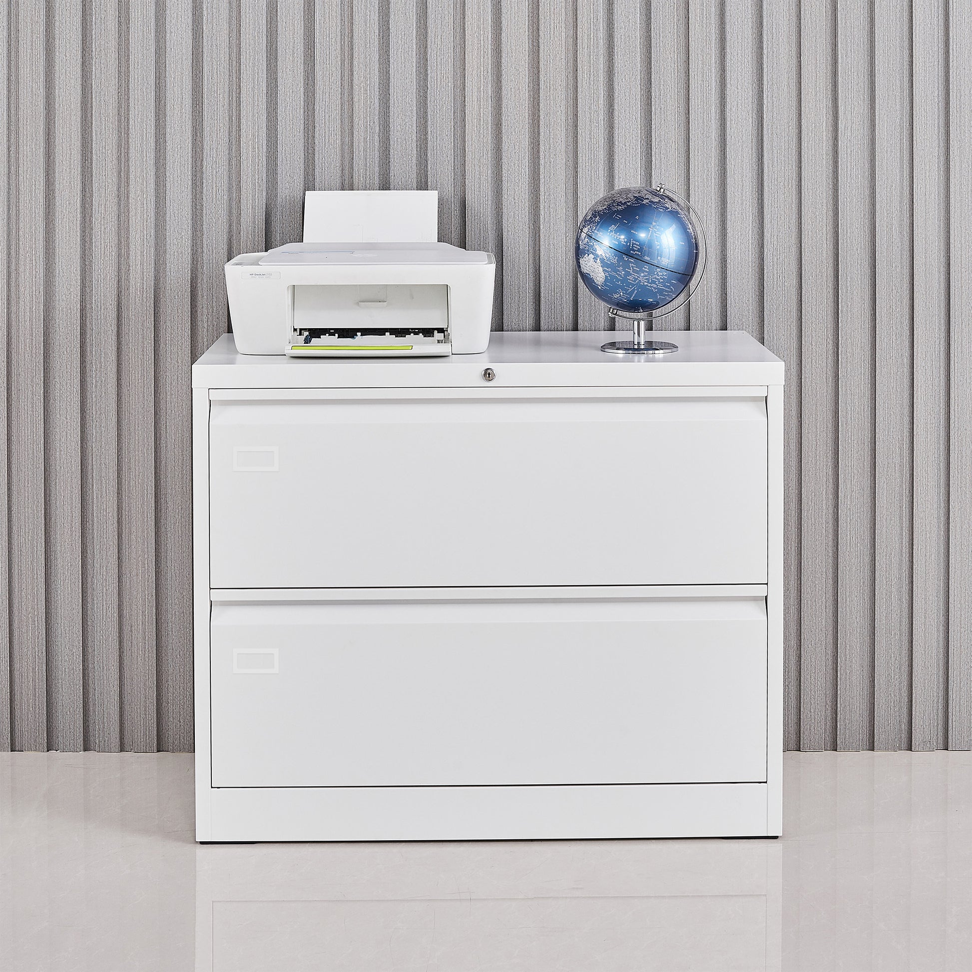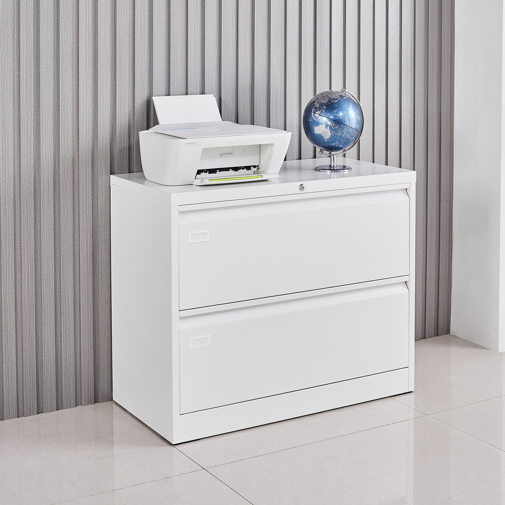 Lock Metal Steel 2 Drawer Lateral Filing Cabinet - White