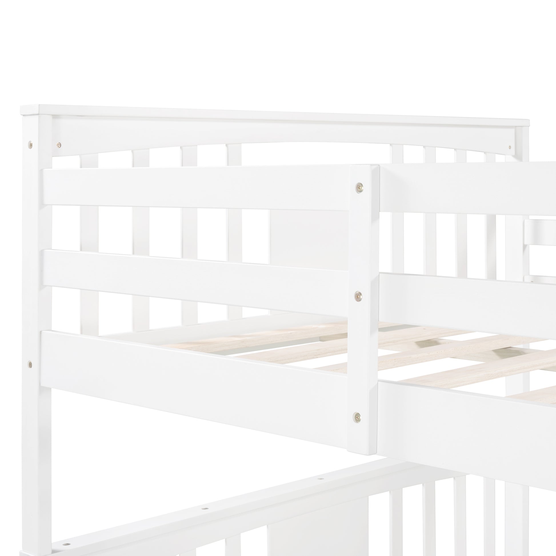 v [Designed for your safety] The upper bunk features a full-length guardrail, while the bottom bunk is designed to include both a headboard and footboard. Along with the handrail, this bunk bed ensures top-notch security for you. What’s more, the solid legs that made of solid pine wood can add strength and durability.