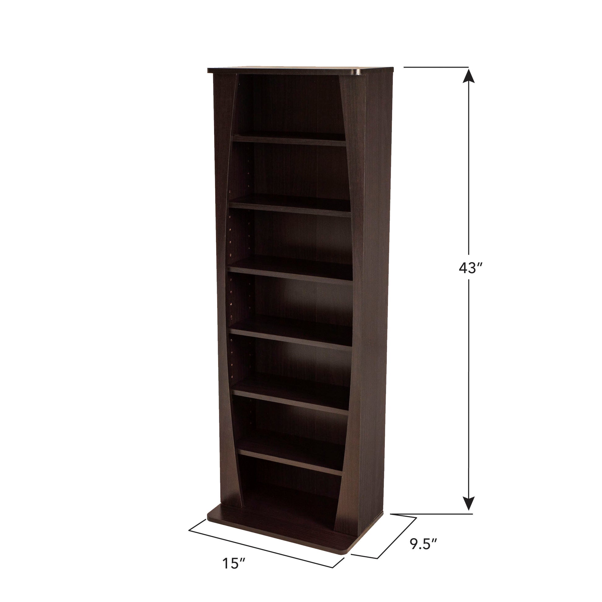 Classic at first glance; a unique twist to the sophisticated eye. The Canoe Media Cabinet, with its rich espresso tone and solid construction, is an efficient storage solution for your media. Look a little closer, and modish curved cutouts enliven each shelf. The shelves are even adjustable, so the configuration can be guided by your individual taste. CDs, DVDs, Blu-rays, games; all will be shown off to best advantage in this handsome piece.