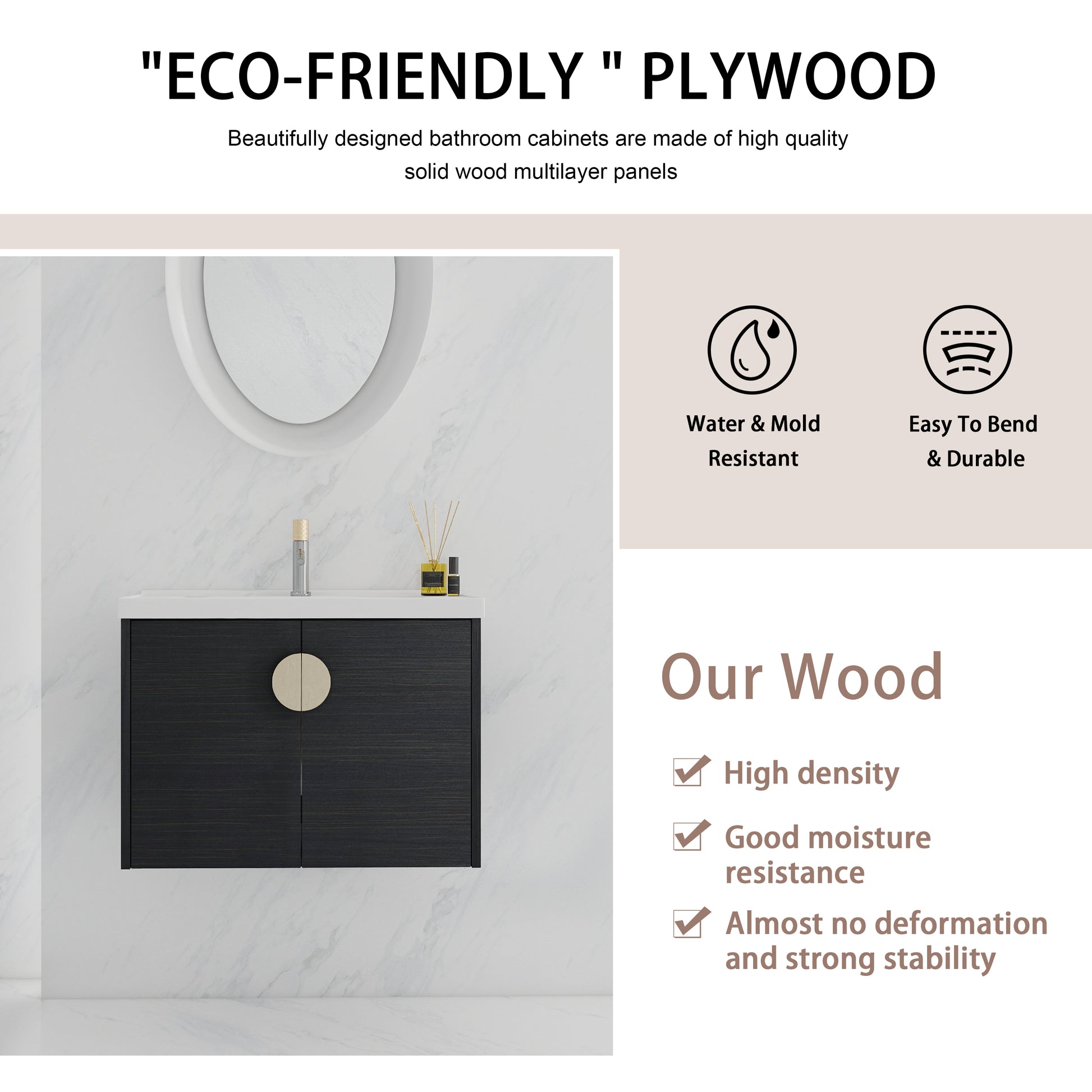 Vanity base is made of high quality "Eco-Friendly" plywood that surface material used "Scratch & Water-Resistant" melamine, which is designed to not only withstand threats of moisture and humidity but also easy to clean and maintain.