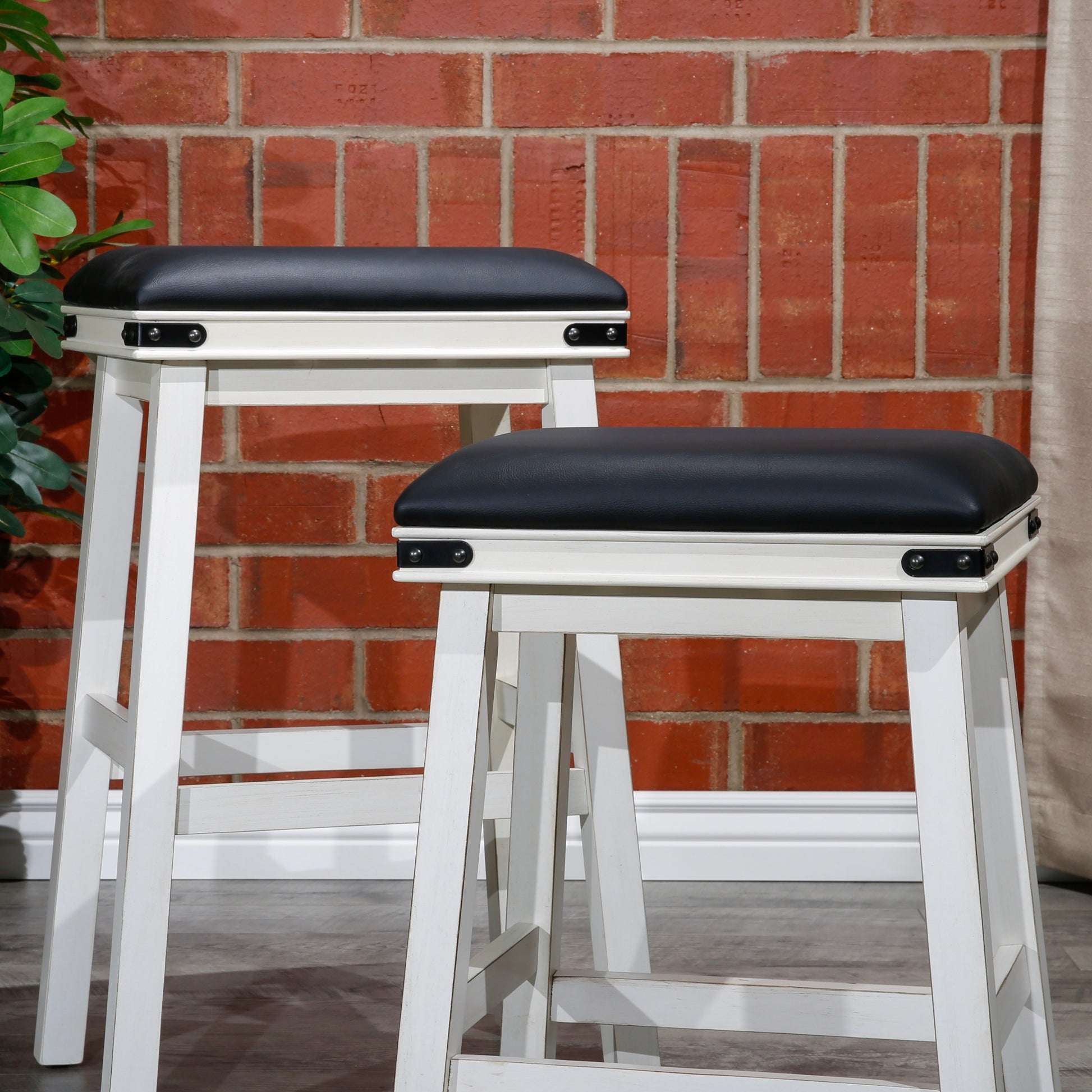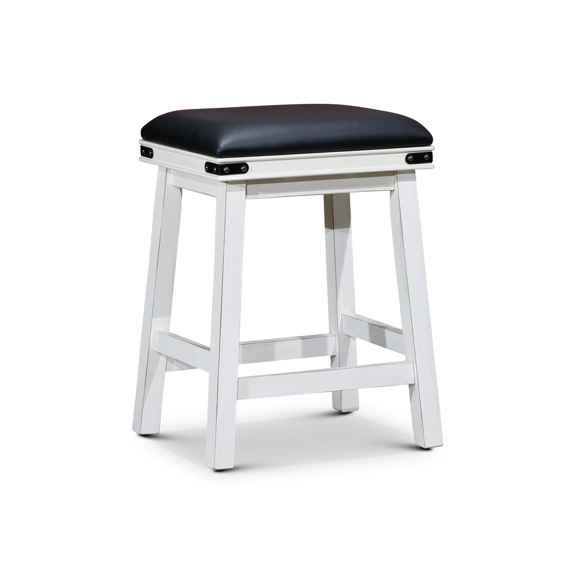 24" Counter Stool, Antique White, Black Leather