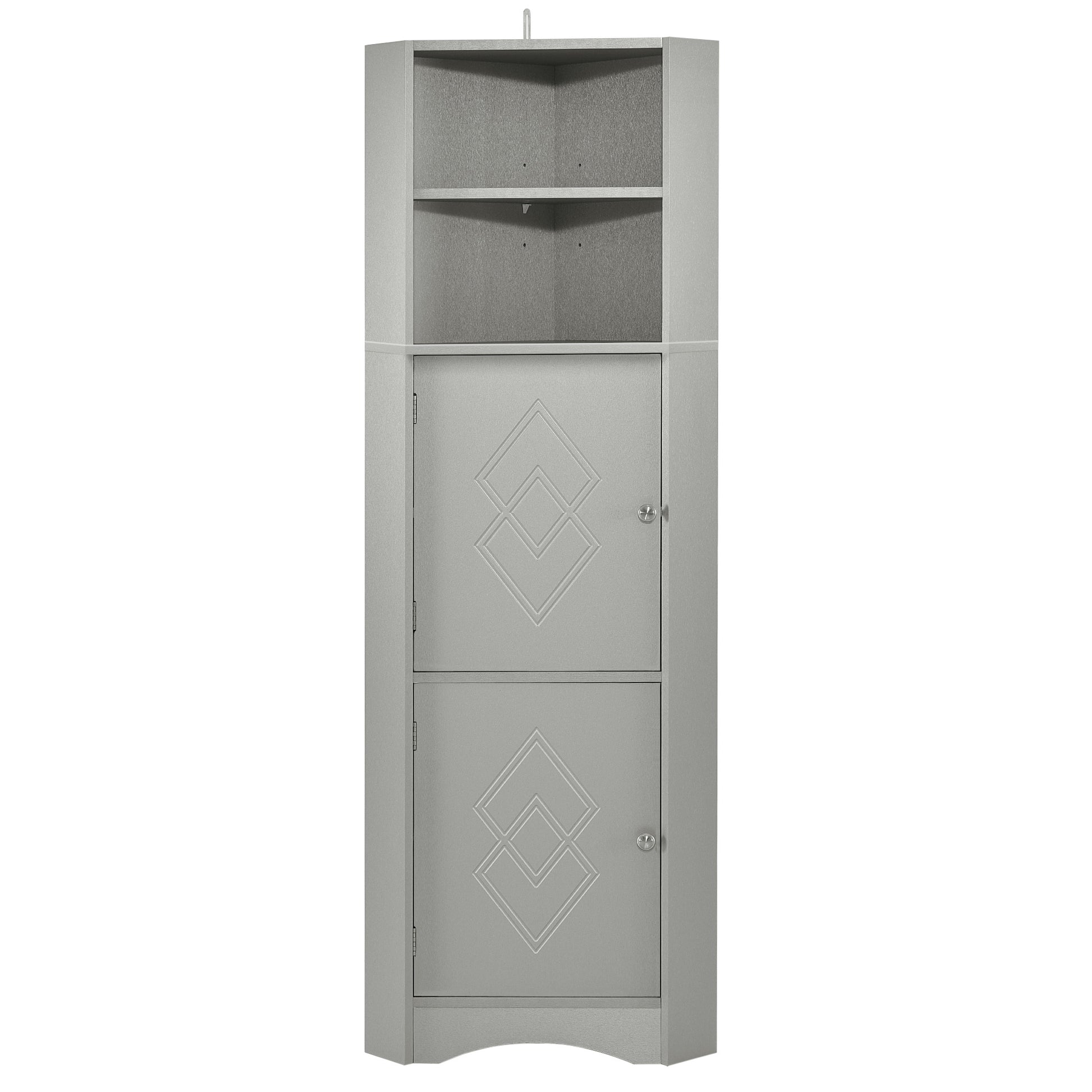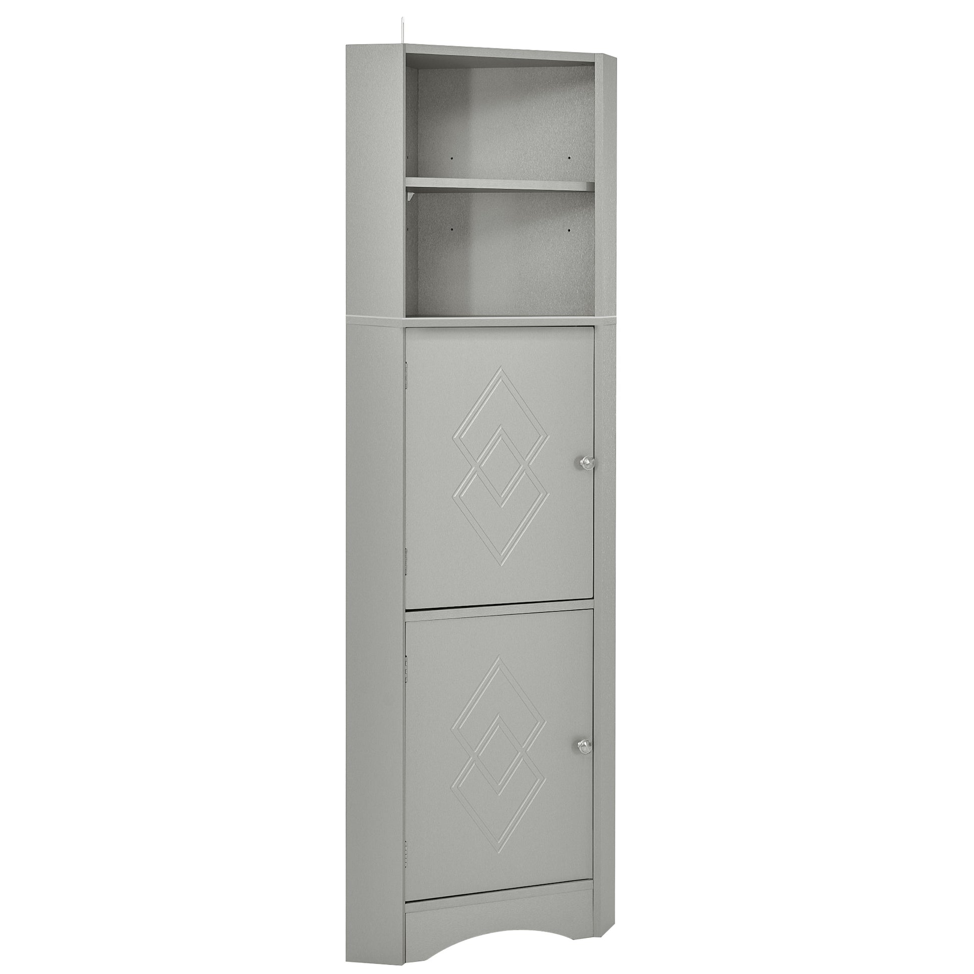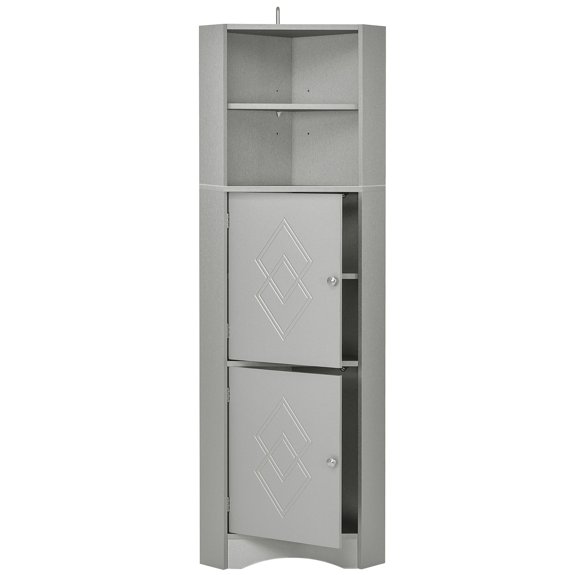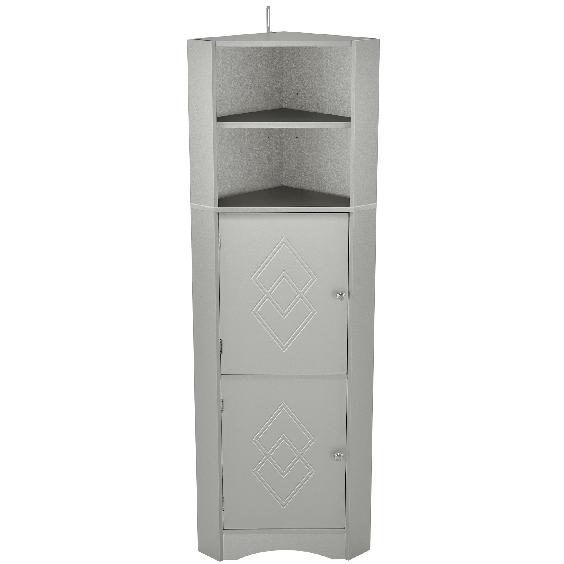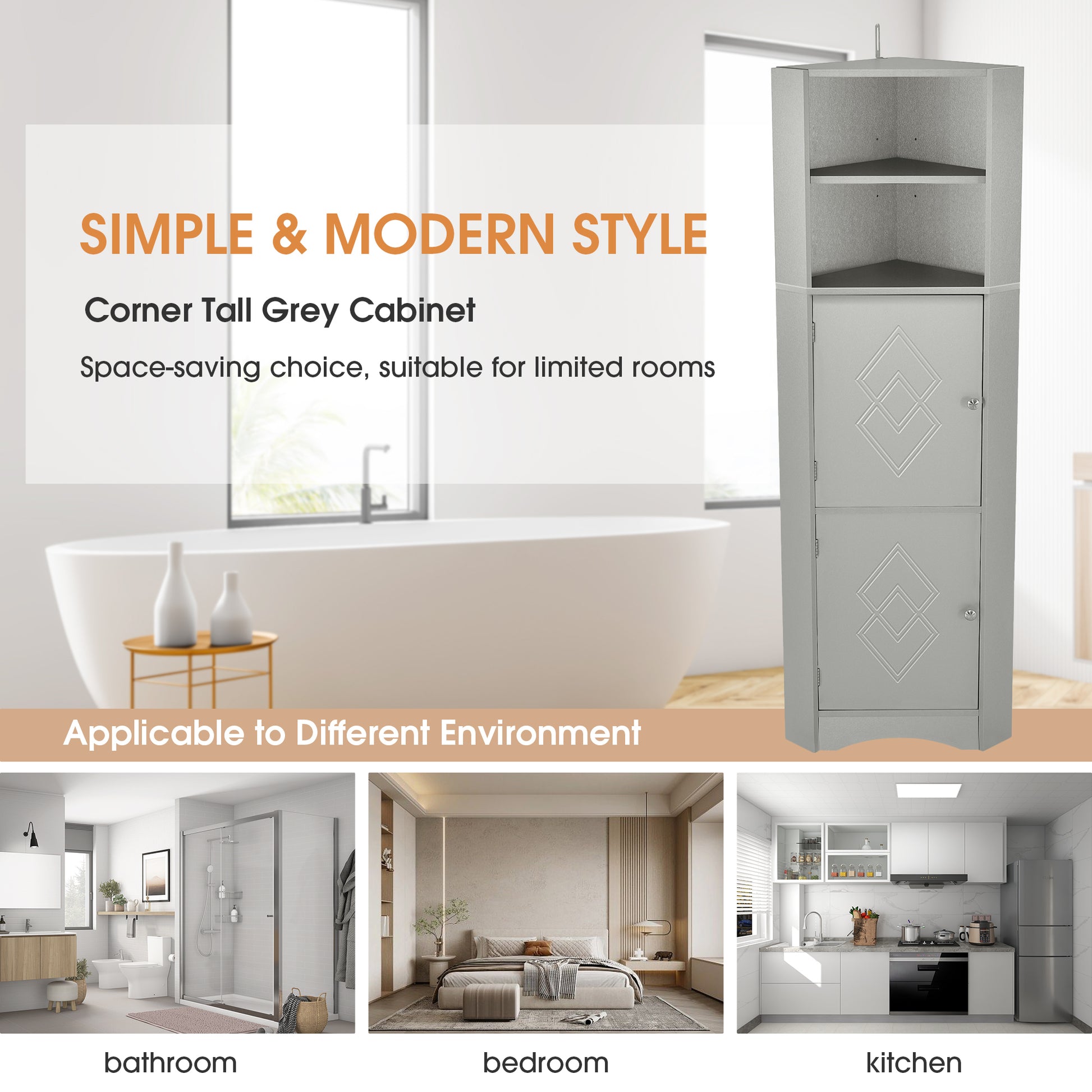 - [Stylish and Considerate Details]: The bathroom cabinet is designed as a triangle shape to stand in the corner to save more space in your home. Furthermore, the rhombus pattern on the door and curved line in the base add more elegant elements to this cabinet. Metal round door handles and magnet door button comfort users when open and close the door.