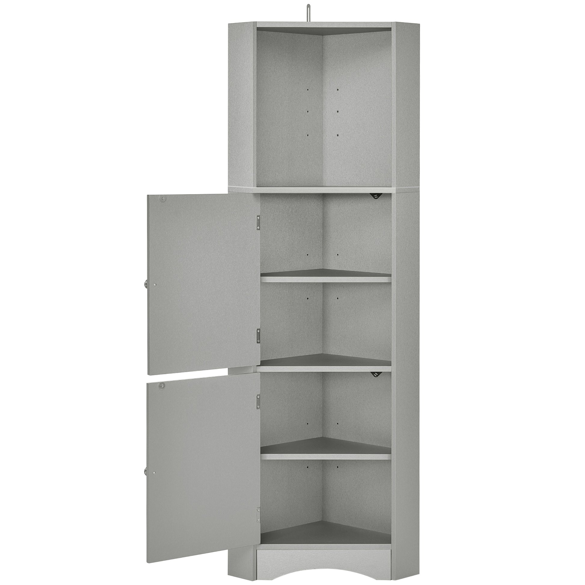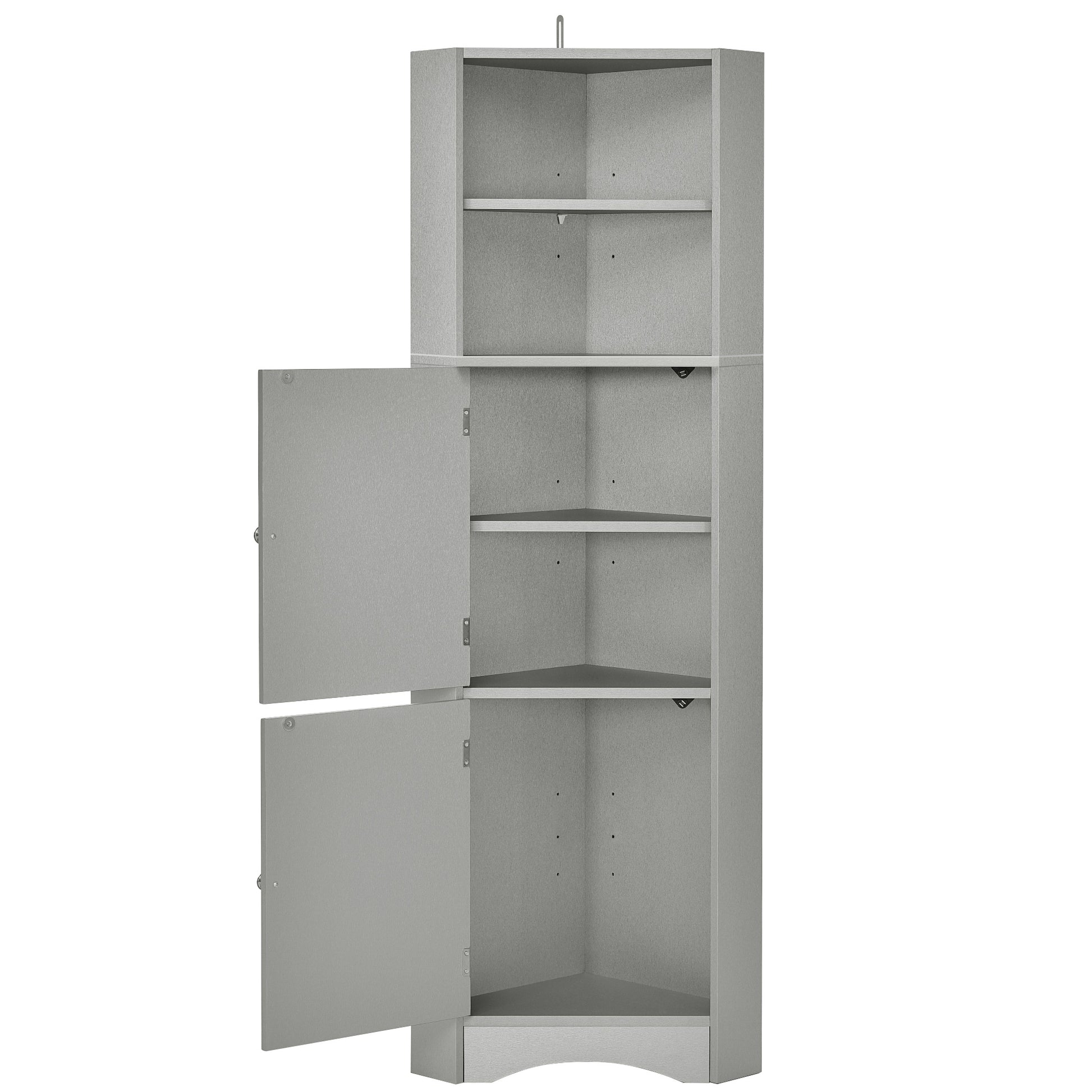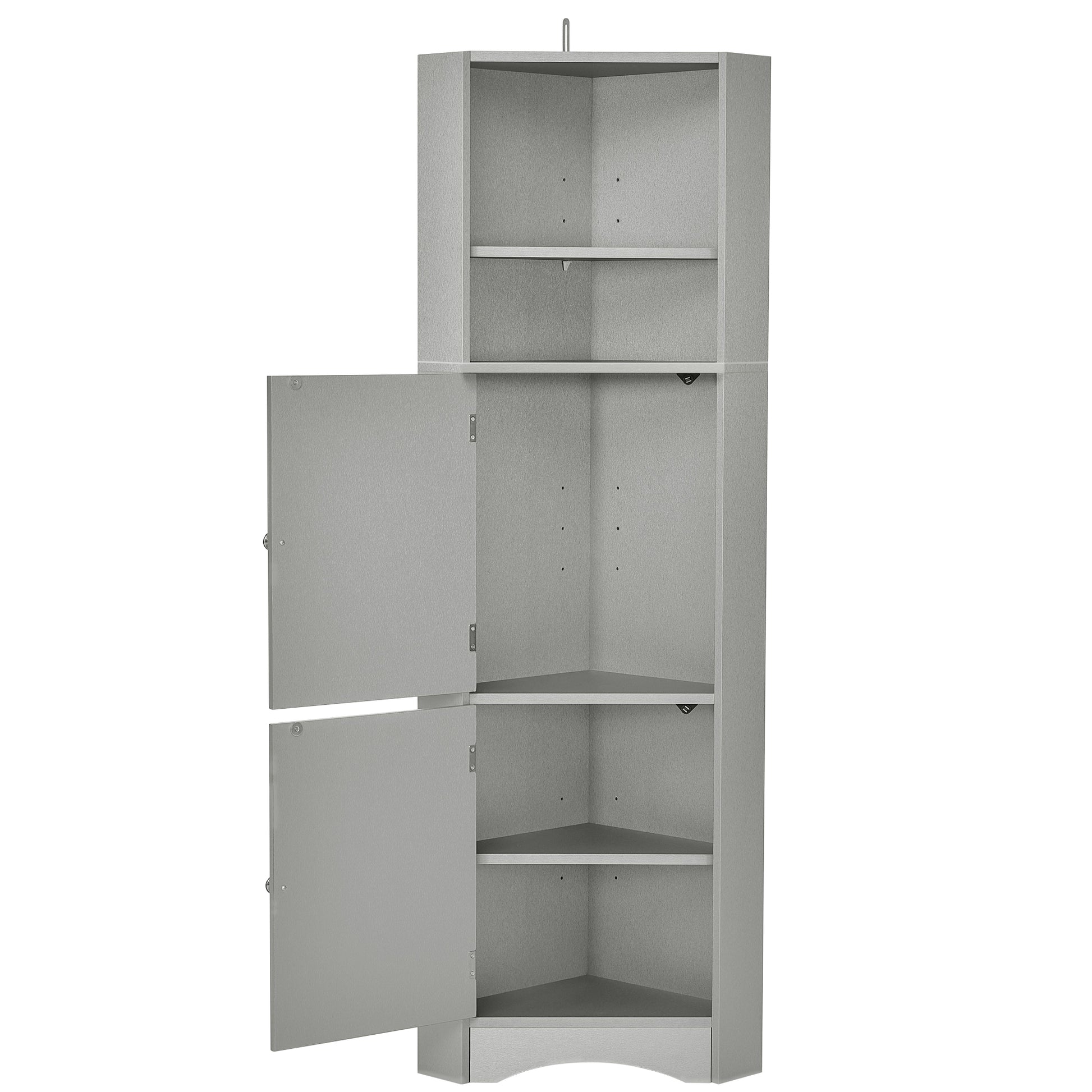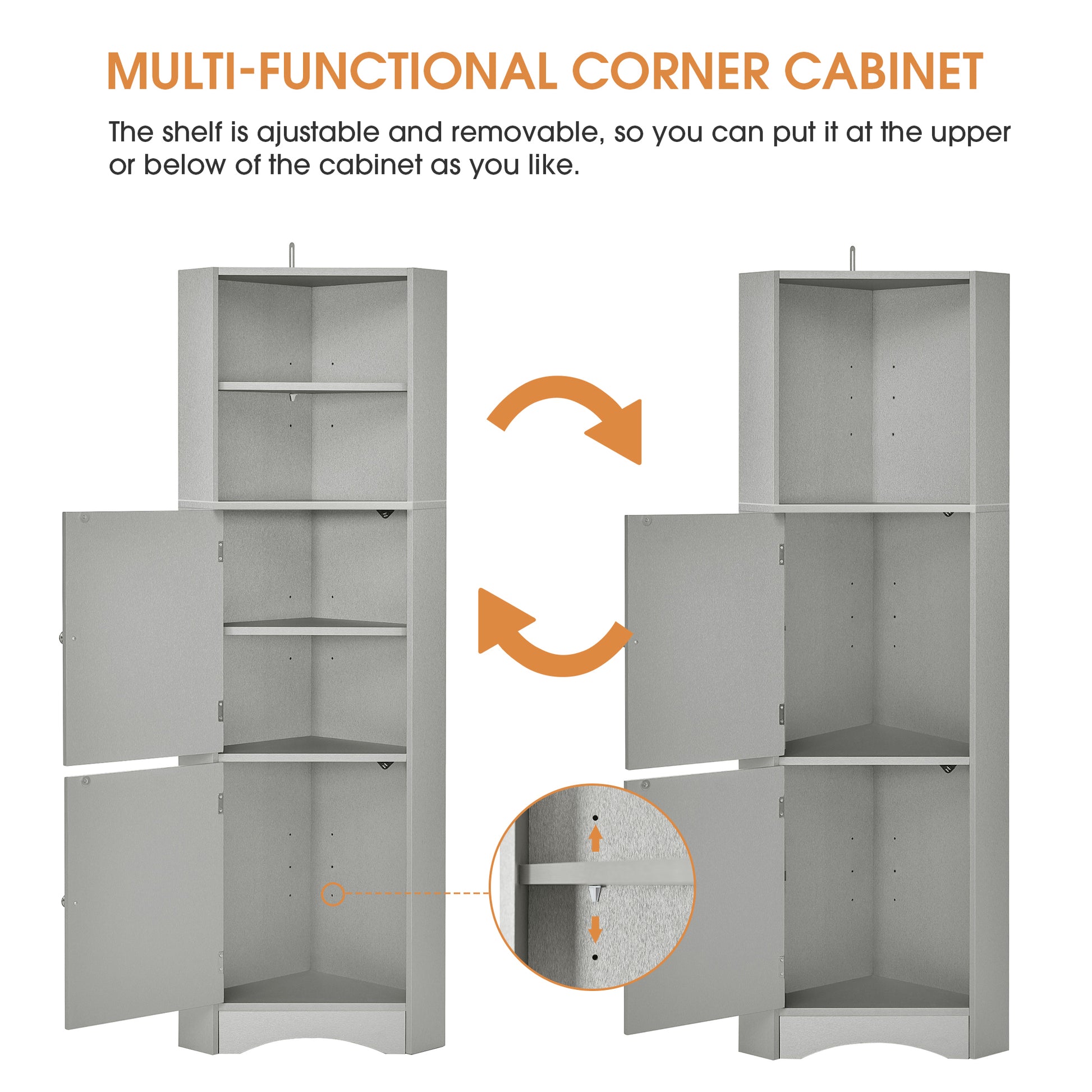 - [Adjustable Shelves]: This corner cabinet contains two movable shelves that allows you to install it in the up, middle or down part of the cabinet to divide the storage space. What's more, each shelf can be adjusted to different heights according to the pre-drilled holes. It totally satisfies home storage needs.