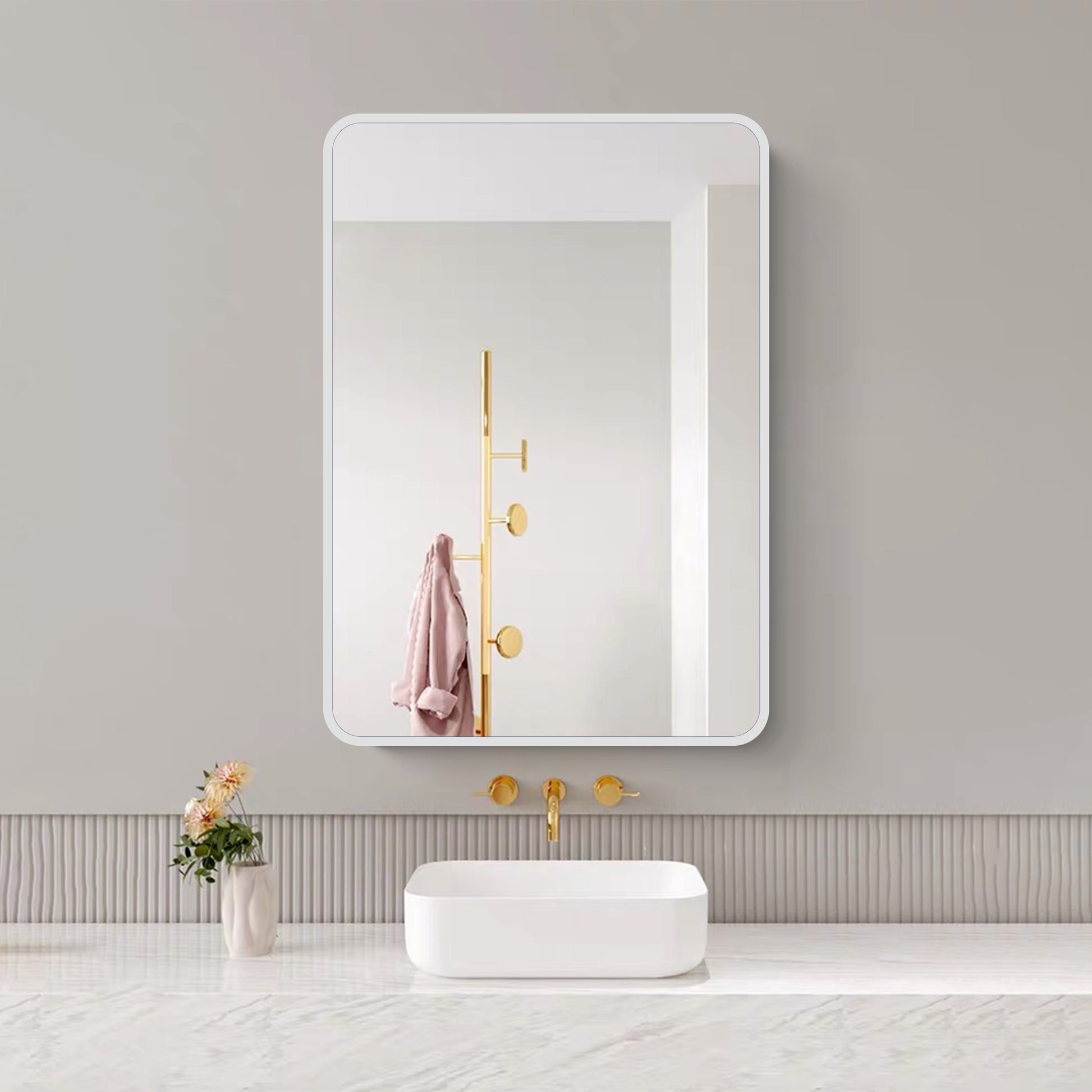 White iron powder mirror cabinet, its unique appearance with white as the main color, brings a calm and luxurious feeling to the space. This material has excellent durability and can resist scratching, wear and corrosion to maintain the long service life of the mirror cabinet. In addition, the white iron powder mirror cabinet is also easy to clean, just wipe gently to restore the bright appearance. Moreover, it has strong waterproof performance and can effectively resist moisture.