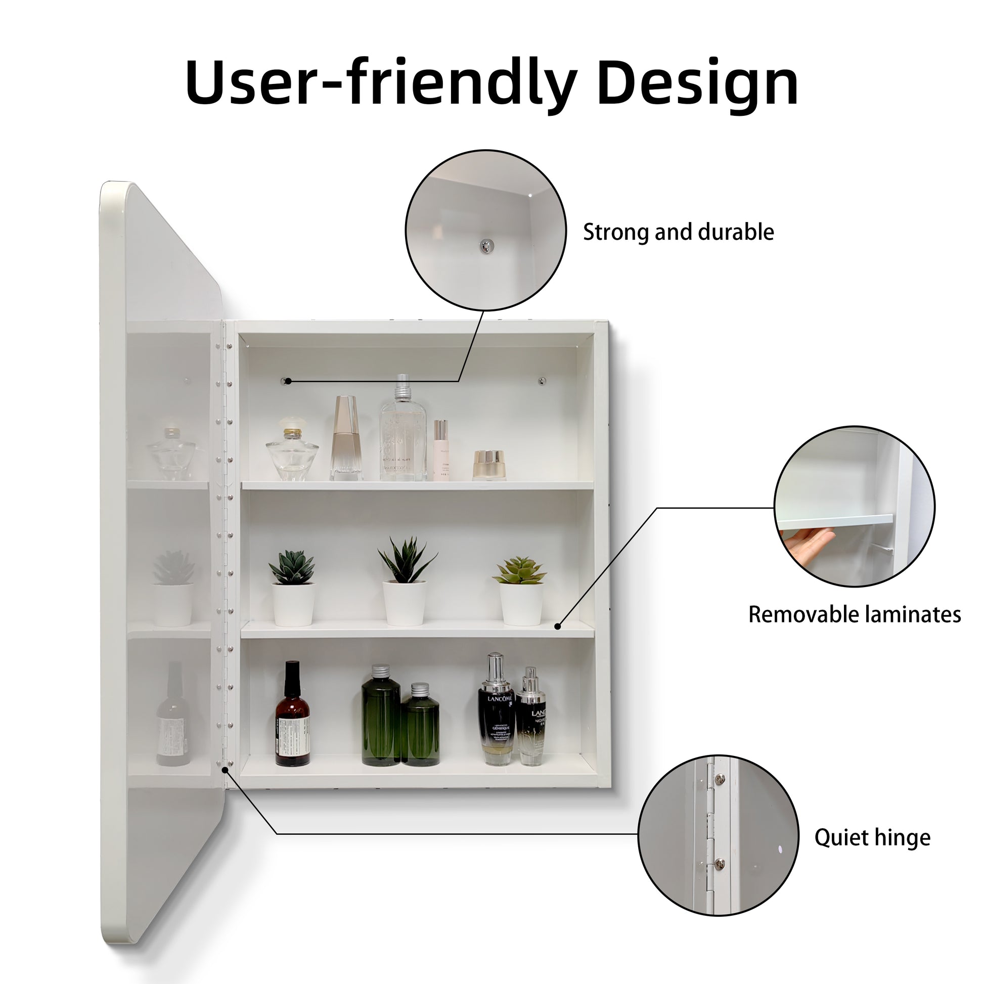 This white mirror cabinet can be wall-mounted or recessed to provide more installation options and to meet the different needs and decorative styles of the user. Wall-mounted installation is very easy, you only need to use the appropriate fixing equipment to mount the mirror cabinet directly on the wall. The embedded installation needs to plan the appropriate embedding space in advance, and embed the mirror cabinet into the wall or closet. After this installation, the mirror cabinet can be perfectly integrated with the surrounding environment, and the overall appearance is generous.