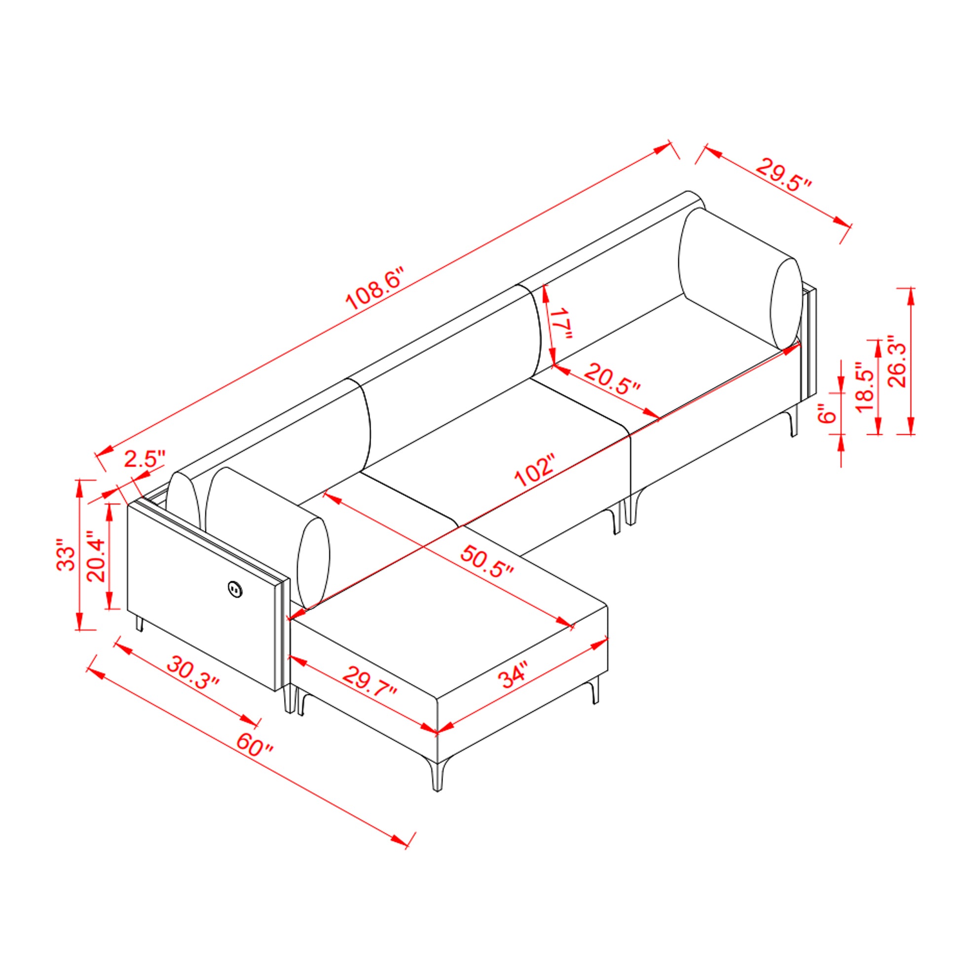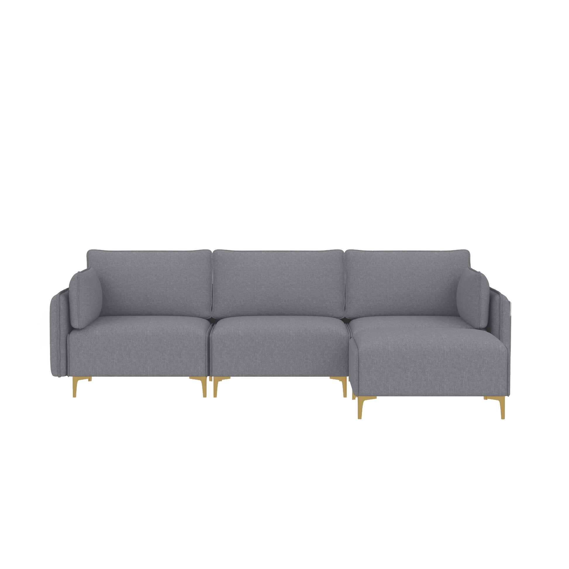 Elevate USB Grey Fabric L-Shaped Sectional Sofa
