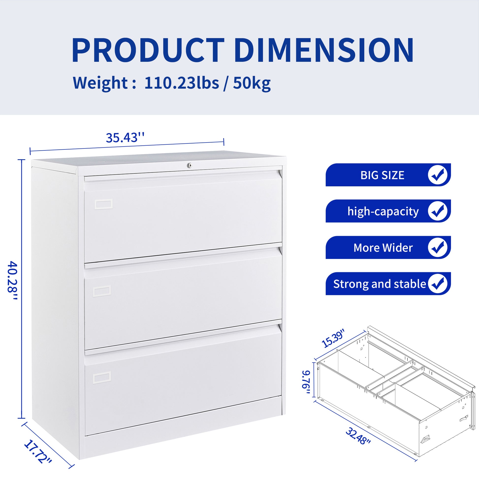 - [LARGE STORAGE SPACE] The spacious drawers are much wider and deeper than the average filing cabinet, and the large capacity will hold almost everything in the office. The maximum load per drawer is about 110 LBS.
