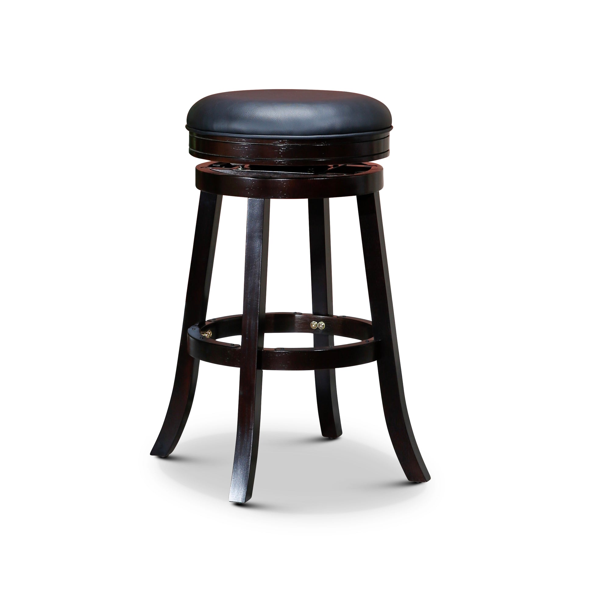 30" Bar Height Backless Swivel Stool, Espresso, Black Leather