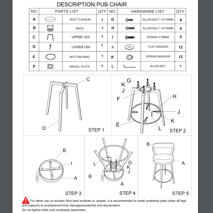 Perfectly styled for your casual dining space is the Appert Collection. This 29-inch pub height chair offering features a dark gray metal base that serves to support the gray faux leather round swivel seat. Allowing for perfect placement within your space, the Appert Collection is offered in a 24-inch counter height and 4 additional colors – brown, black, red and white.