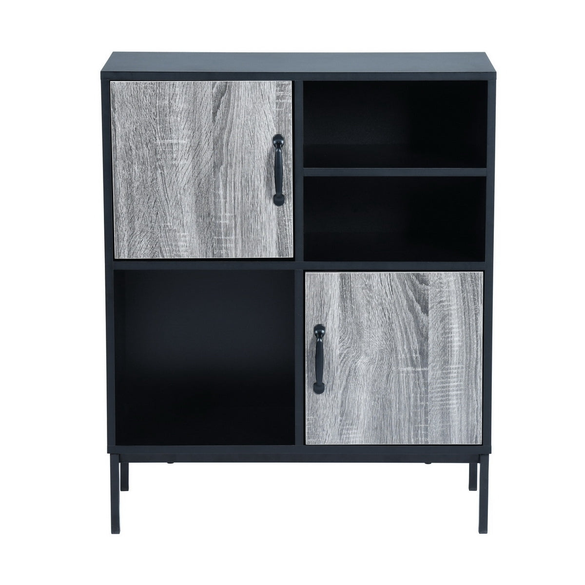 You like clean and tidy...that's great, so do we. Two closed adjustable shelves provide versatility to easily organize and store anything you want.The 6.3'' storage space allows you to put various specifications of items. Whether you're using it to display your favorite knickknacks or stow away all your toys, boxes and extra linens, Berkshire Low Lockers allow you to hide clutter behind beautifully designed wood doors. Combining black with grey, this beautiful and functional piece can be used in any room of your home. Features: