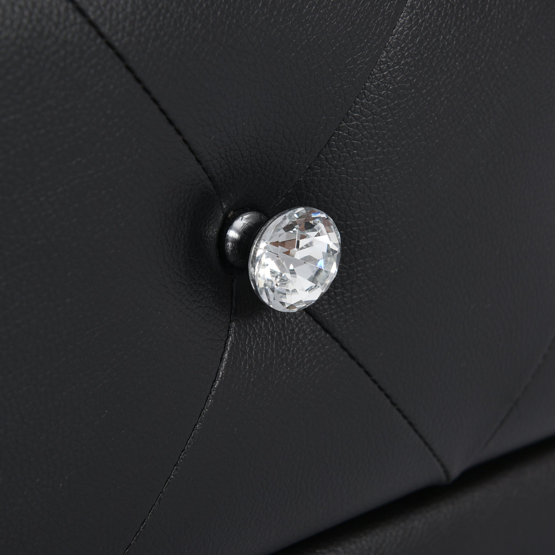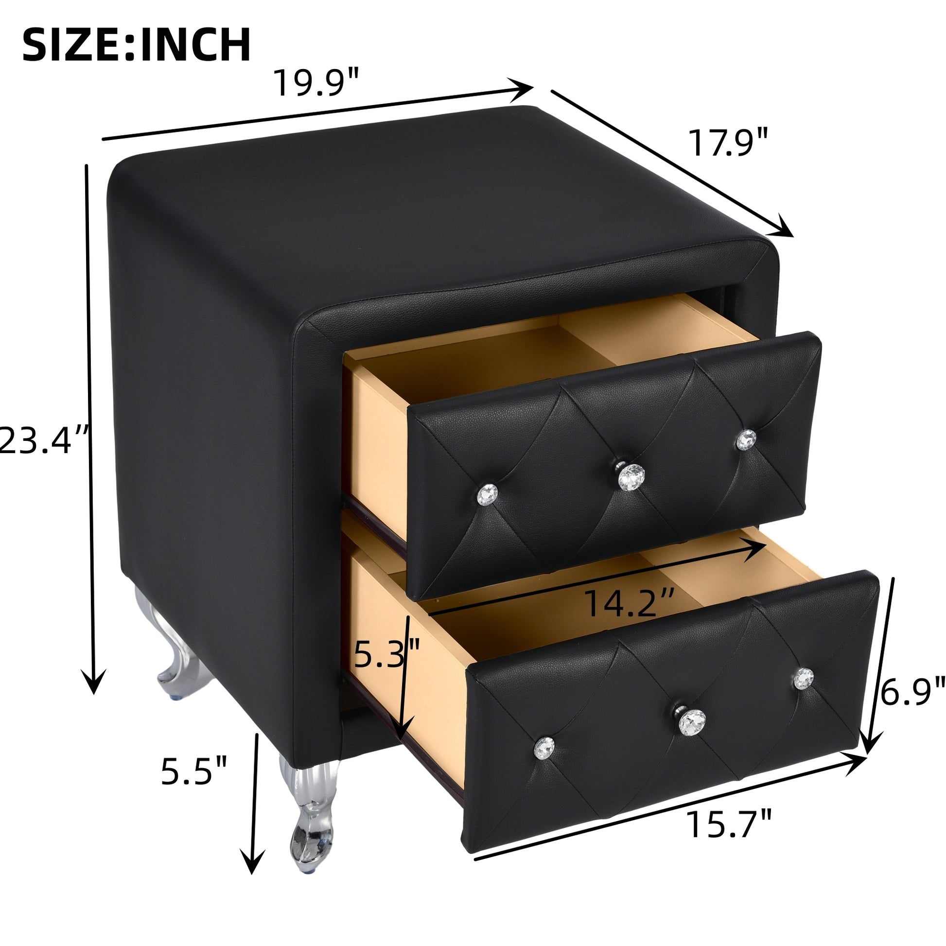 Elegant PU Nightstand with 2 Drawers and Crystal Handle,Fully Assembled Except Legs&Handles,Bedside Table with Metal Legs - Black