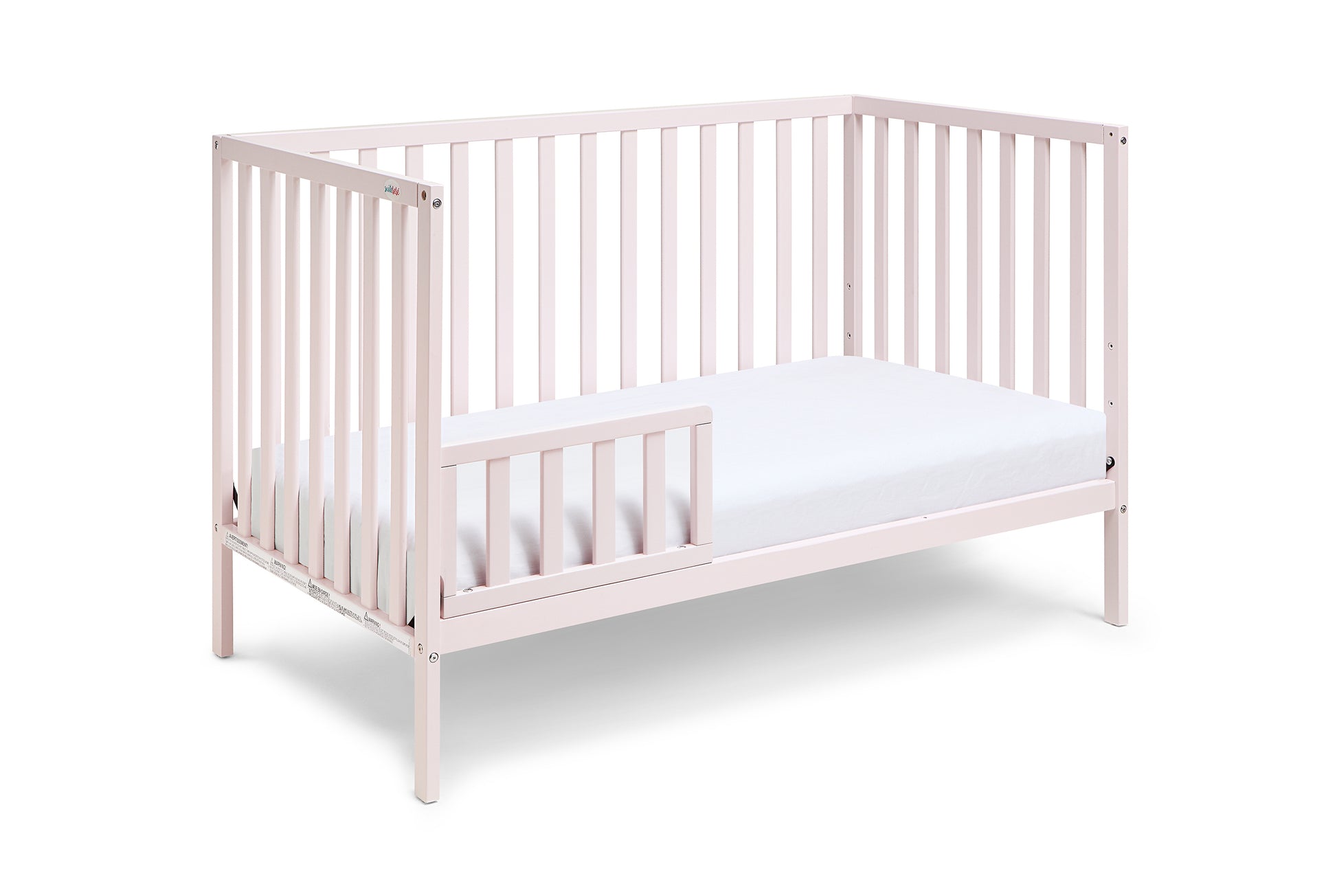 The Palmer crib is a fun and playful island crib that is perfect for parents looking to maximize limited space. Available in 5 finishes, you have the option to go bright with Baby Blue or Pastel Pink, or keep it subtle with White, Espresso, and Natural. This 3-in-1 island crib is designed to grow with your baby, seamlessly transitioning from a crib, to a day bed or to a toddler bed with the additional guard rail that is included! Color is Pastel Pink.