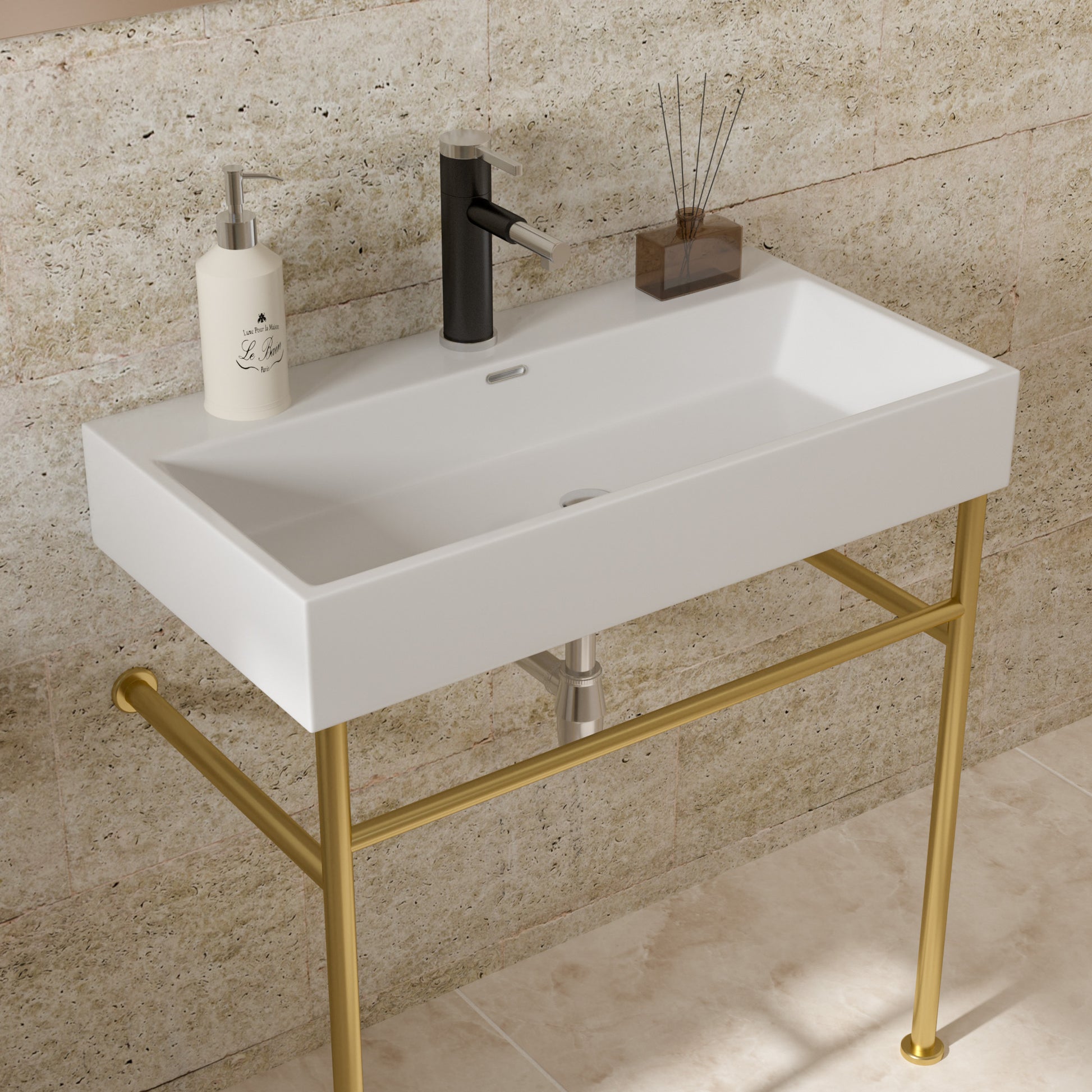 Bathroom Console Sink with White Basin Gold Legs