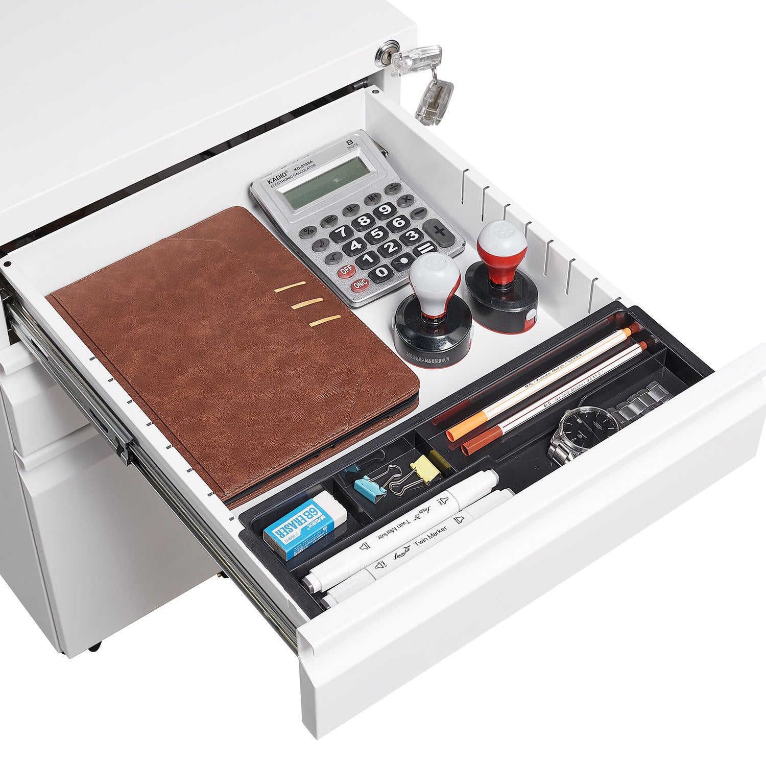 3 Drawer Mobile Locking File Cabinet, Rolling Filing Cabinet for Letter/A4 Size With 5 Wheels,WHITE