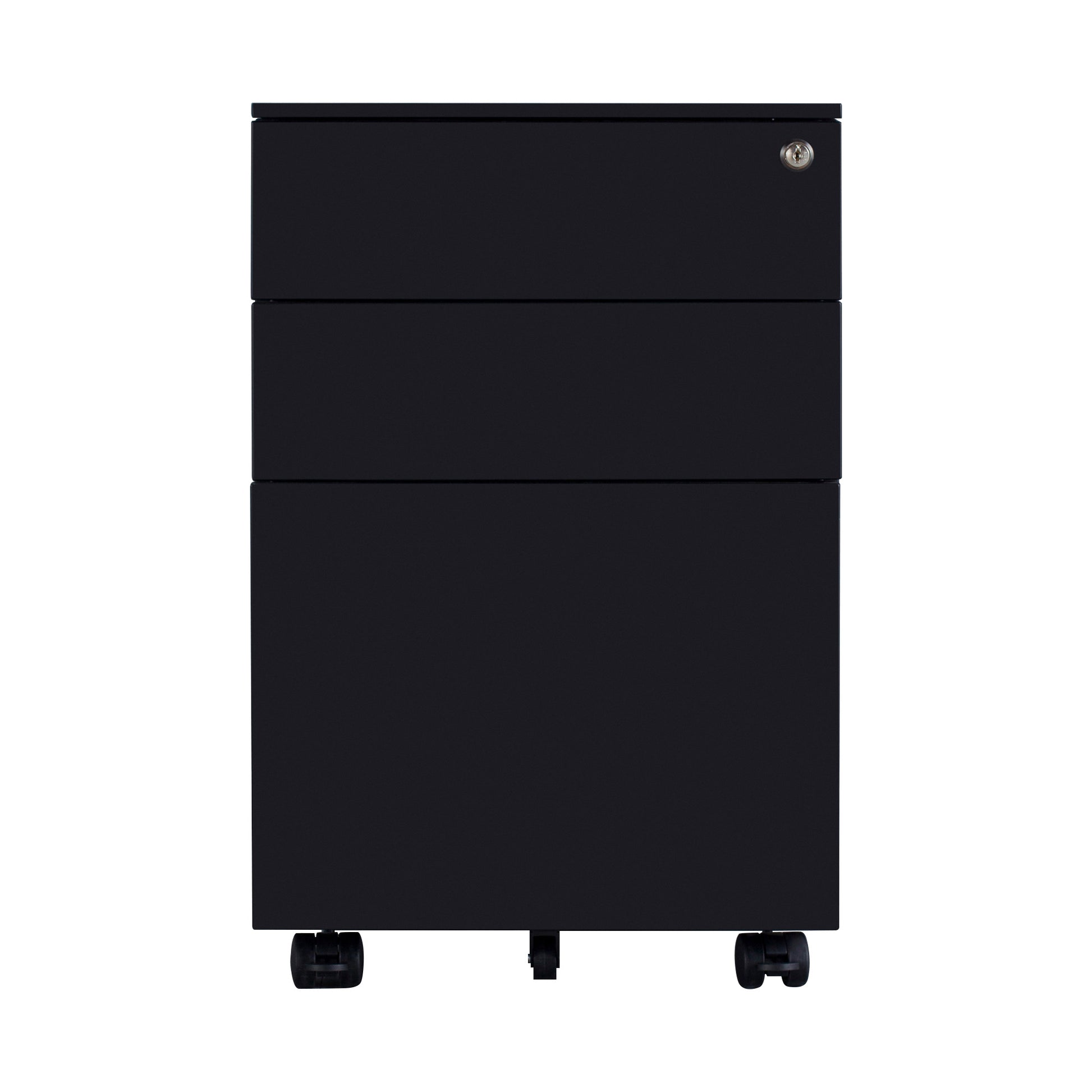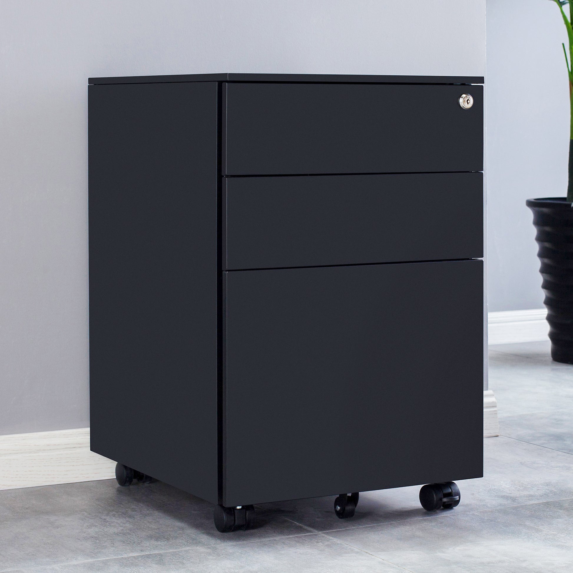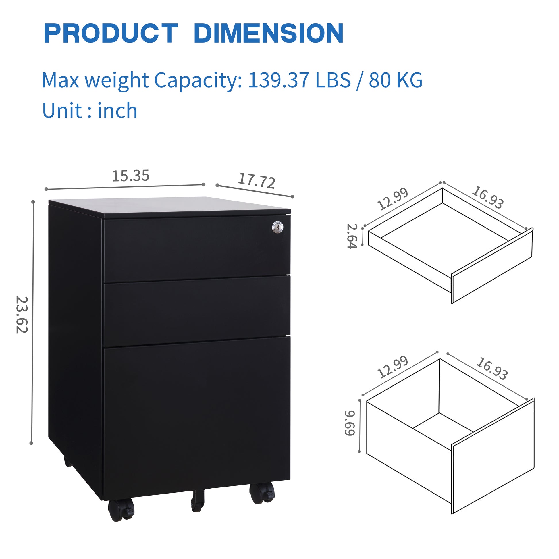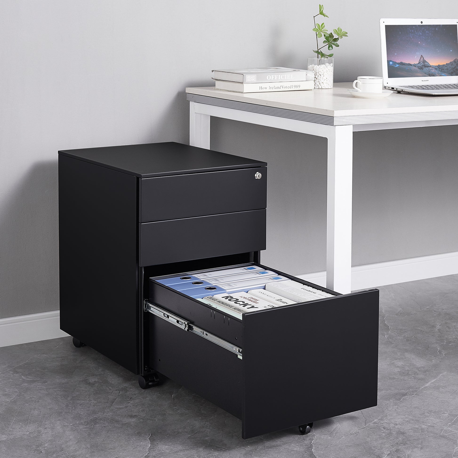 HISTEEL Movable 3 Drawers Metal File Cabinet Lockable Pedestal Files Fully Assembled Except for 5 Cactors