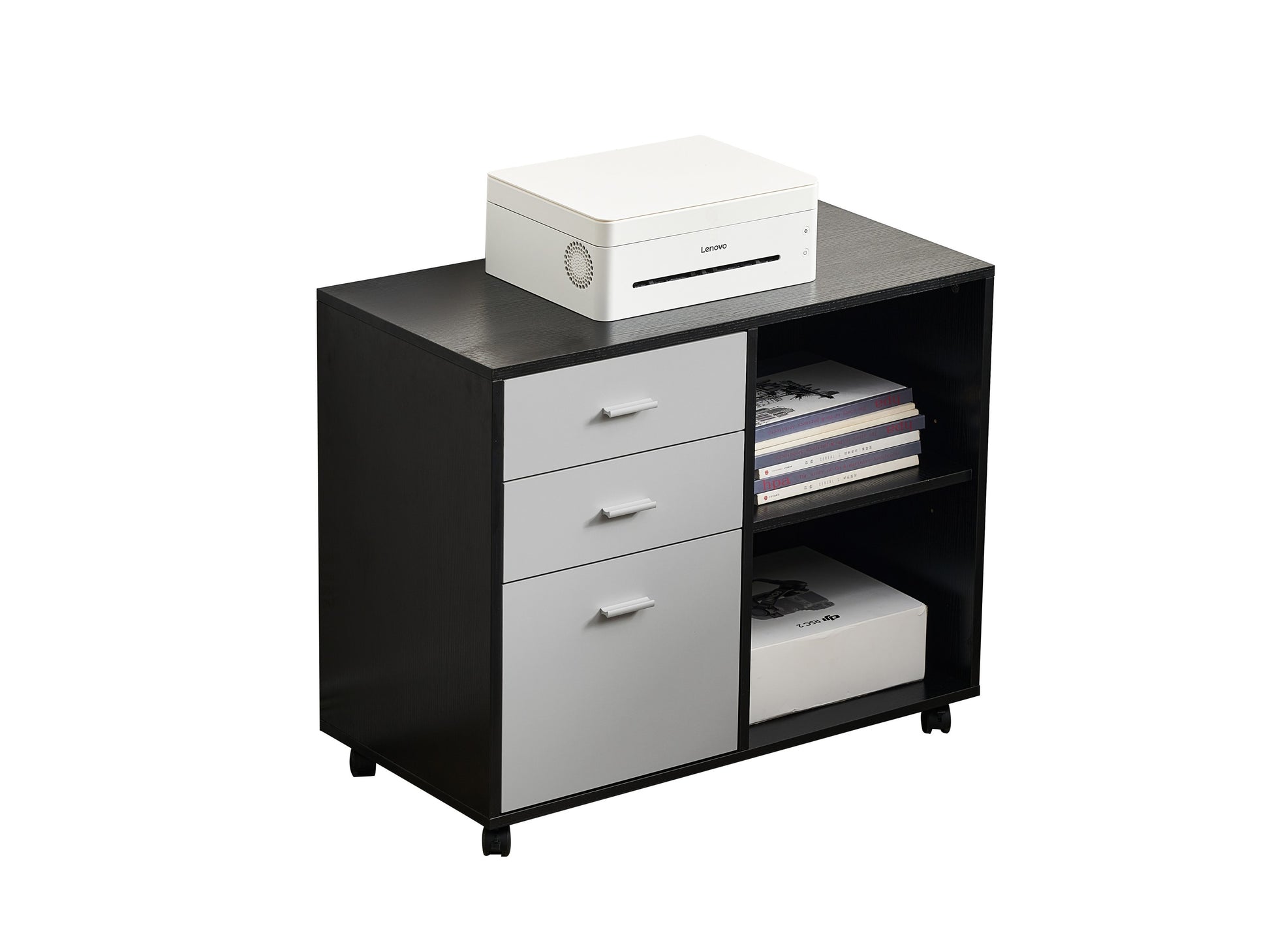 32'' Wide 3 -Drawer Mobile Filing Cabinet - Black oak and Grey