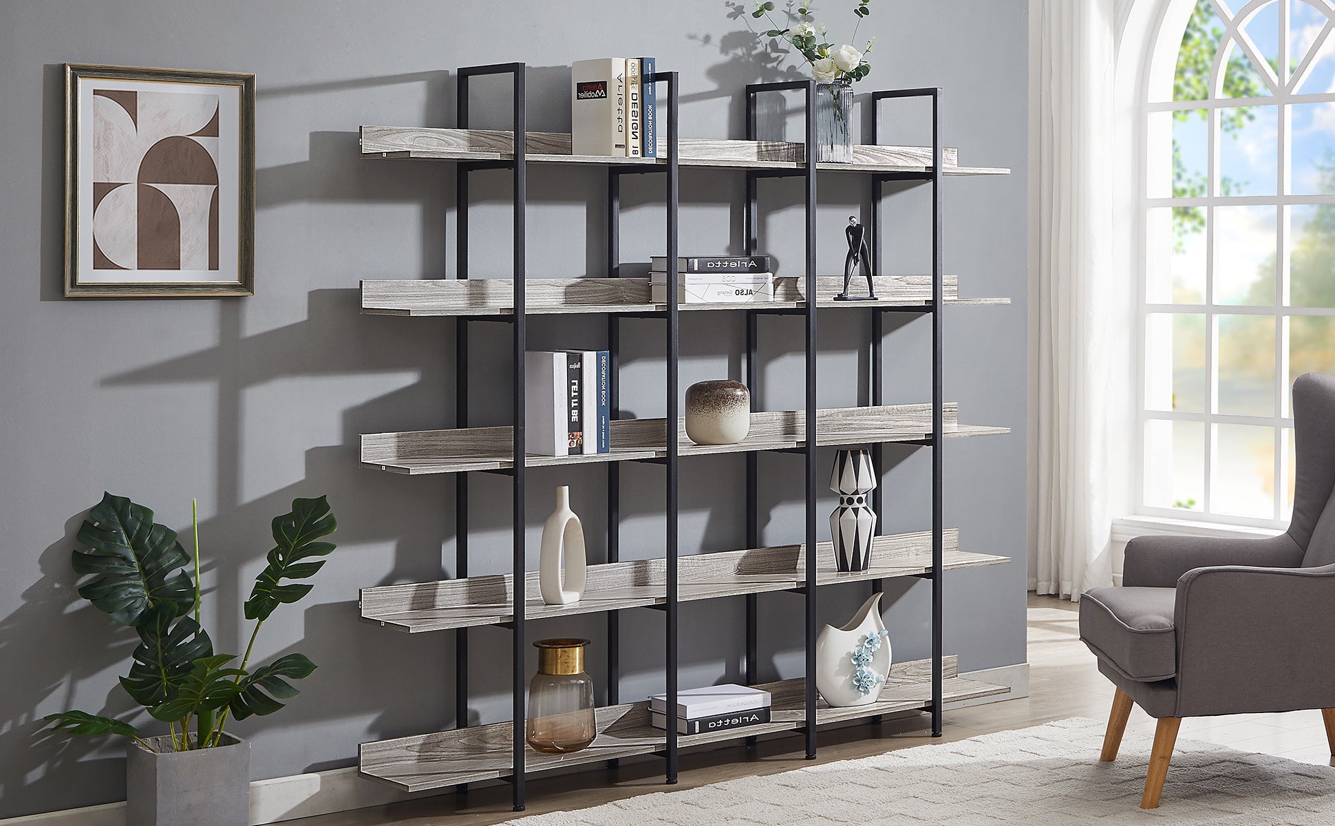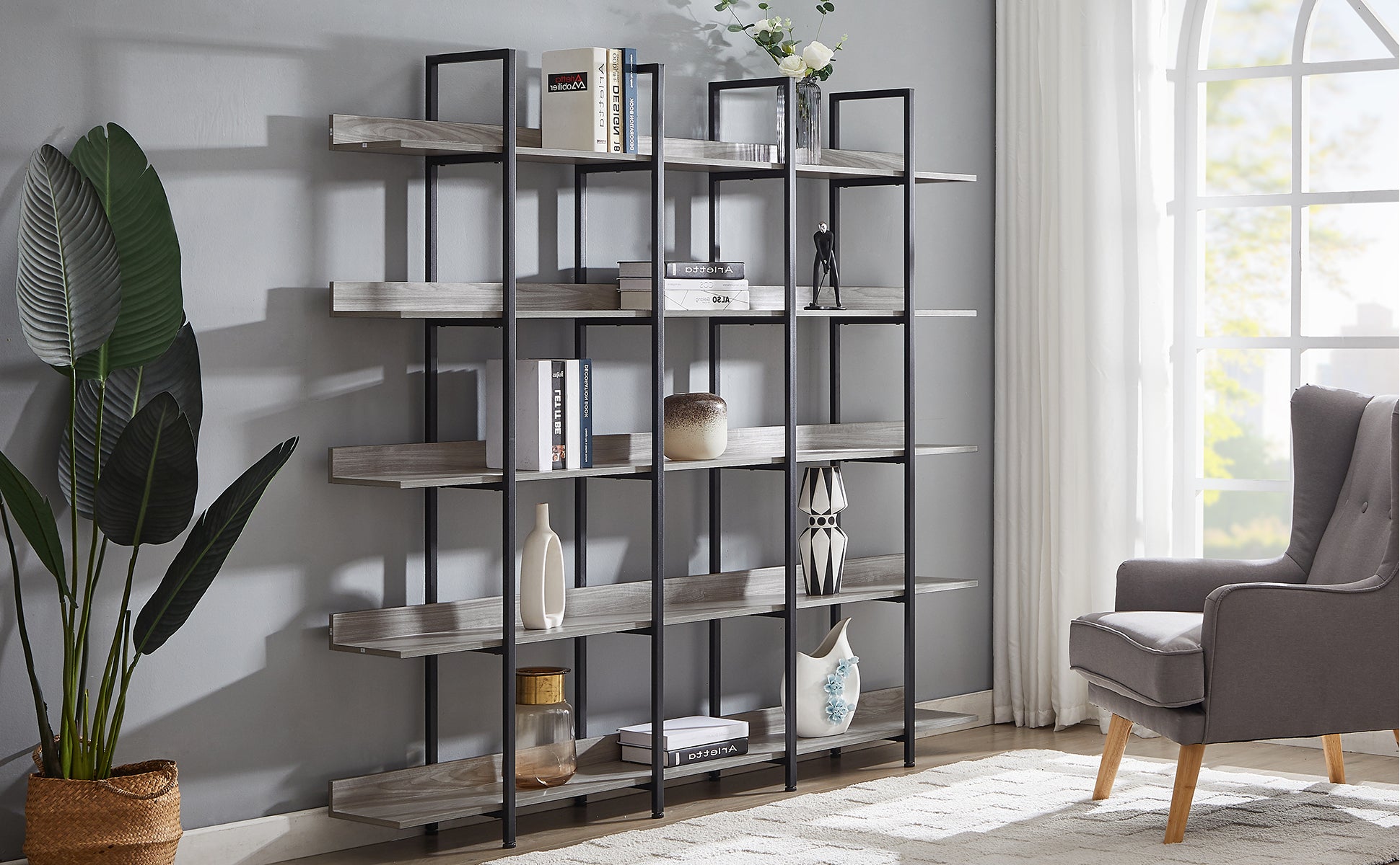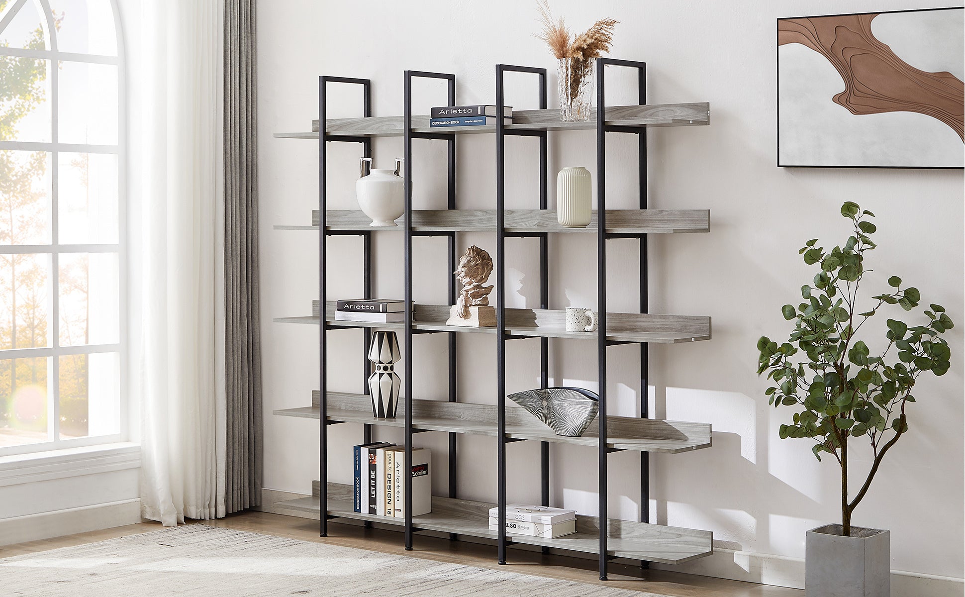 Home Office Open Bookshelf with 5 Tier, Bookcase Industrial Style