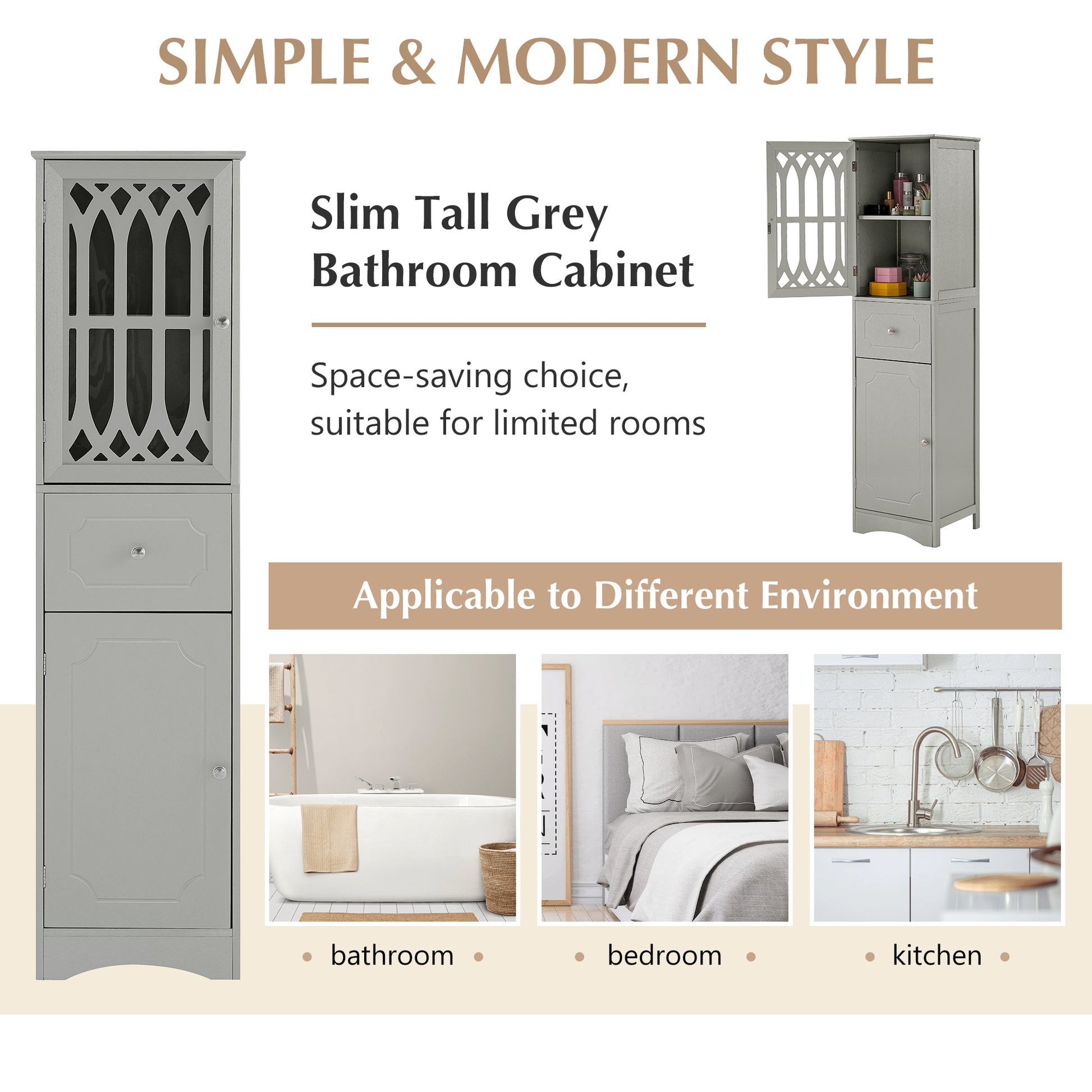 Statured Bathroom Cabinet with Drawer and Doors - Gray