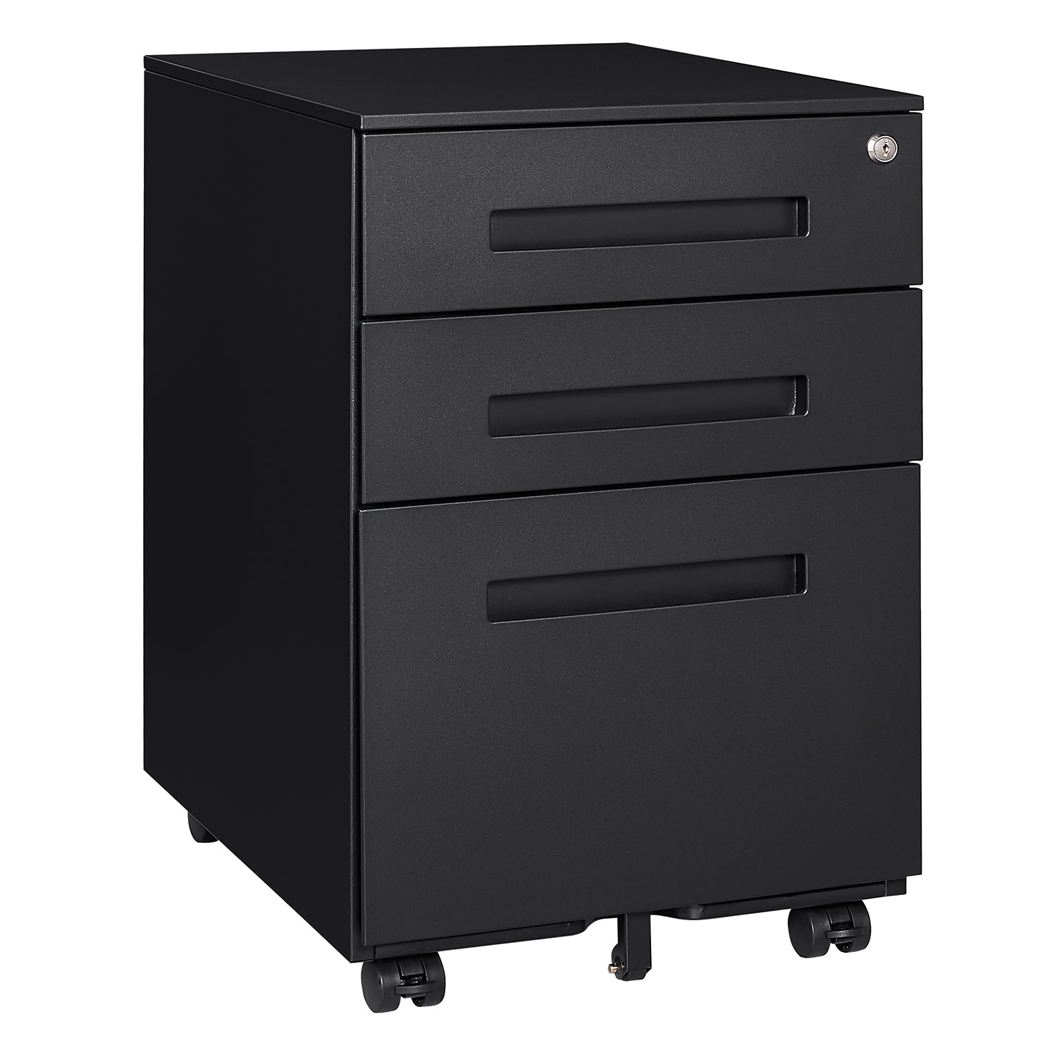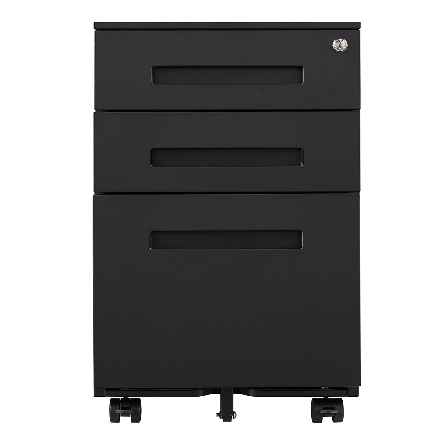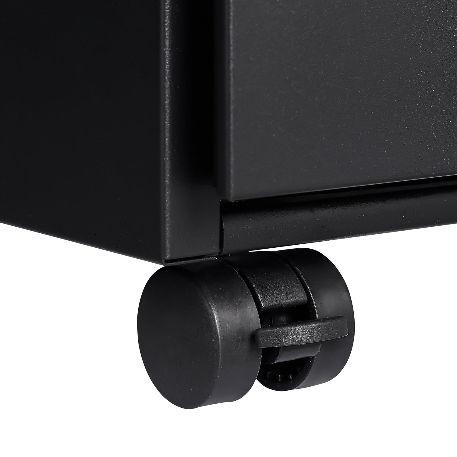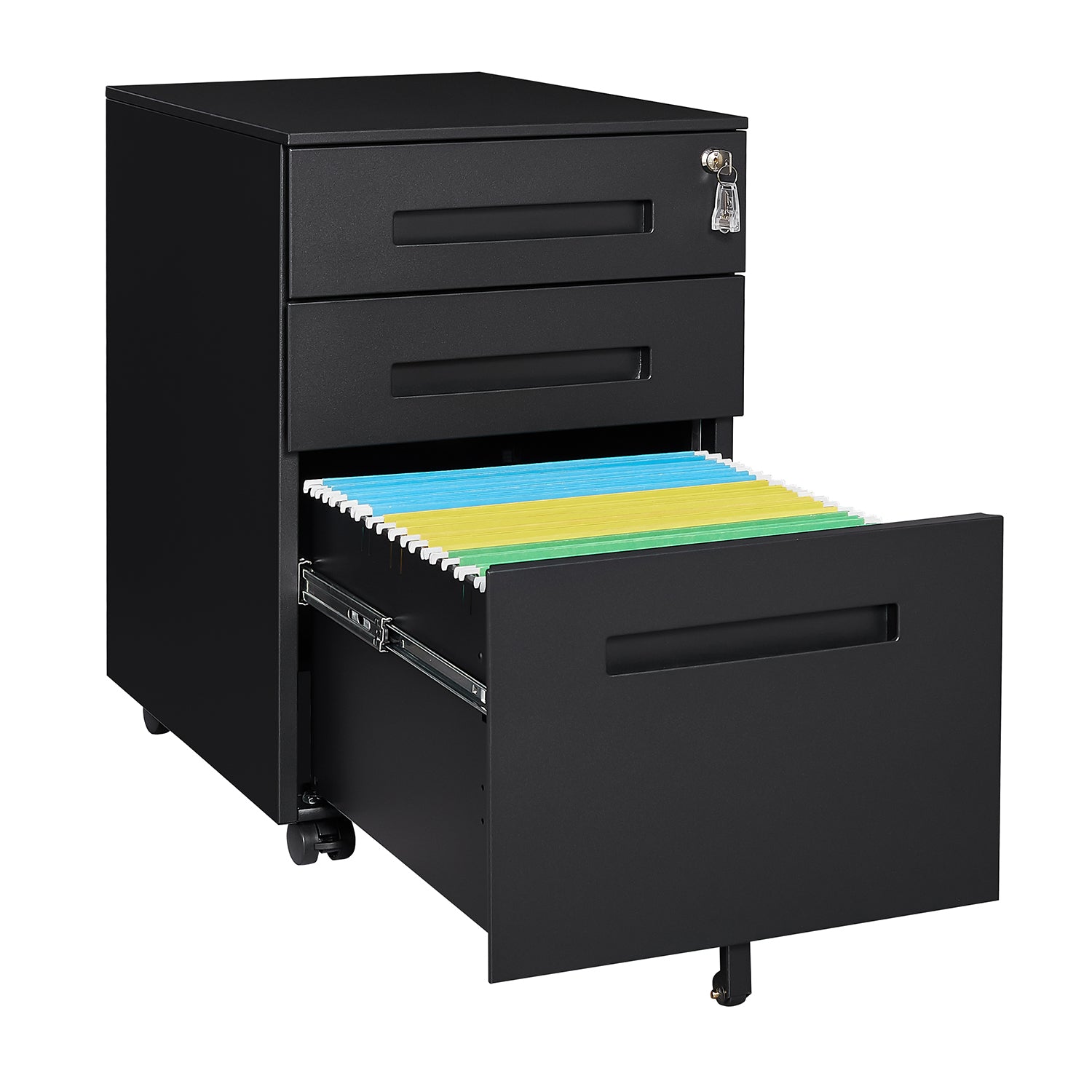 Black File Cabinet, 3 Drawer Mobile File Cabinet with Lock and Wheels, Under Desk Metal Filing Cabinet for Office,Lockable Rolling Cabinet with 2 Keys for Legal/Letter/A4 Size