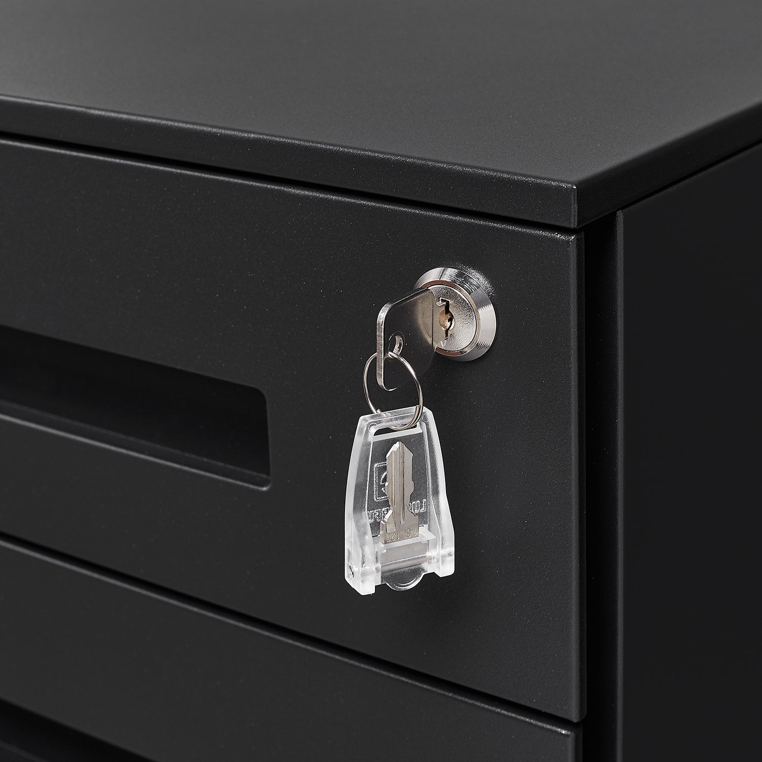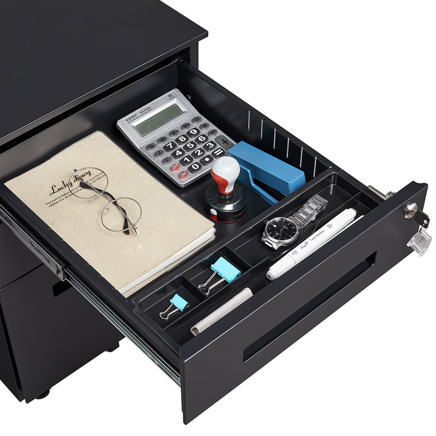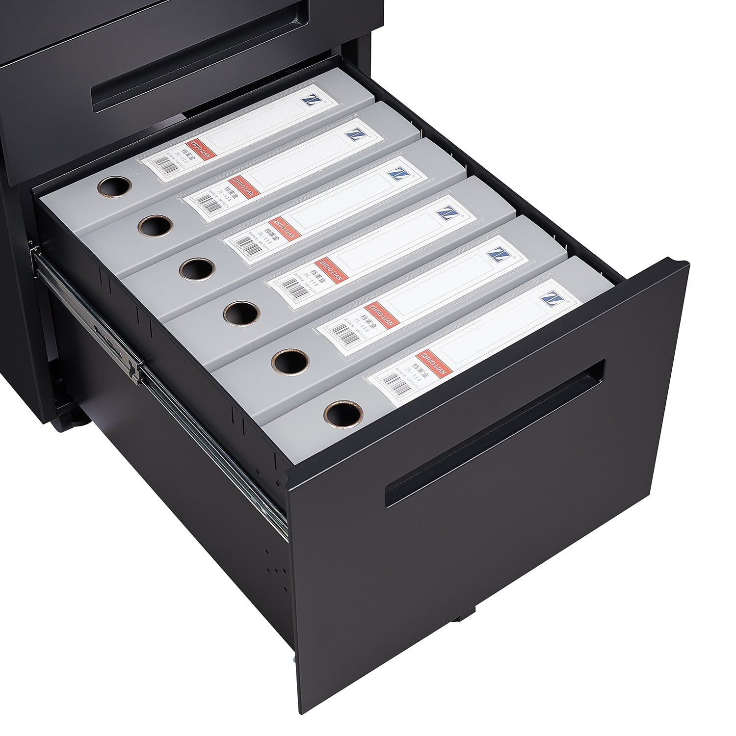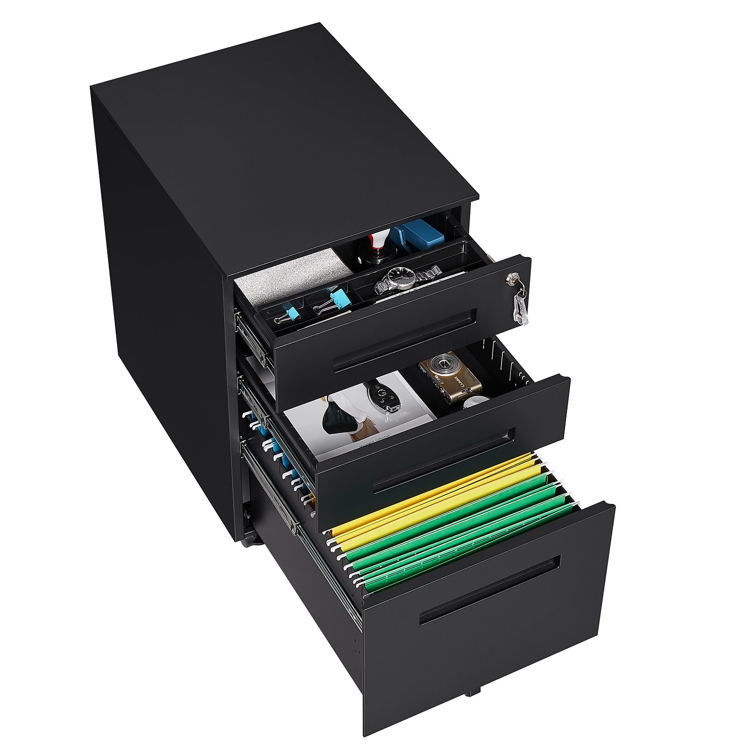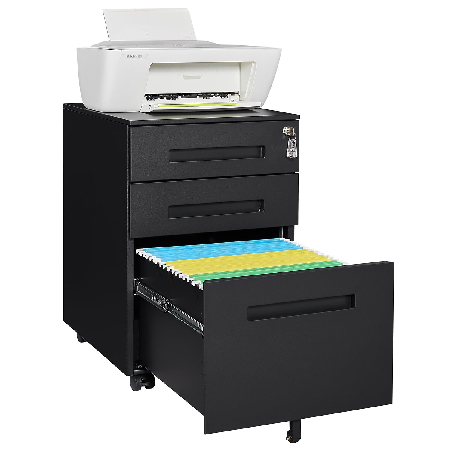 Black File Cabinet, 3 Drawer Mobile File Cabinet with Lock and Wheels, Under Desk Metal Filing Cabinet for Office,Lockable Rolling Cabinet with 2 Keys for Legal/Letter/A4 Size