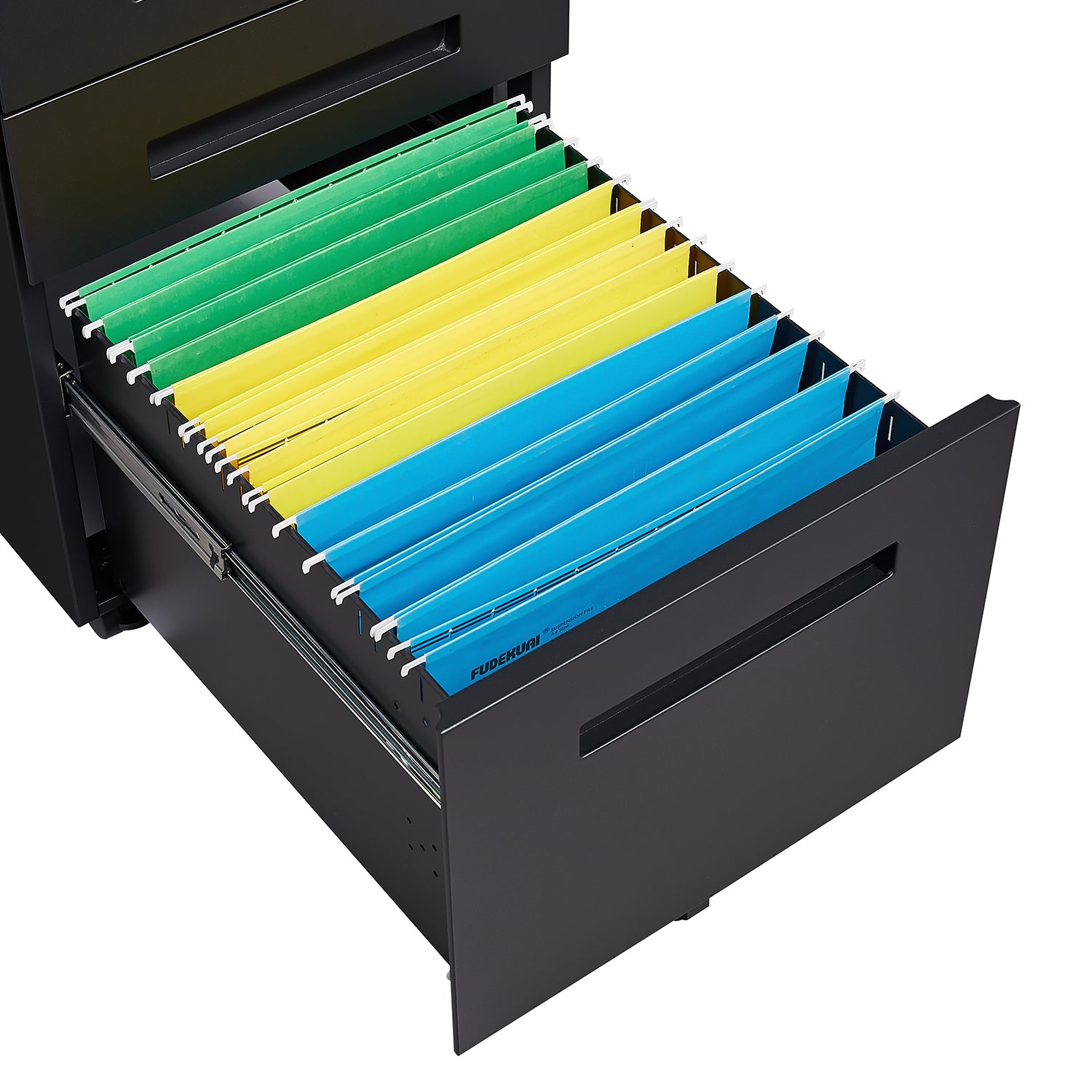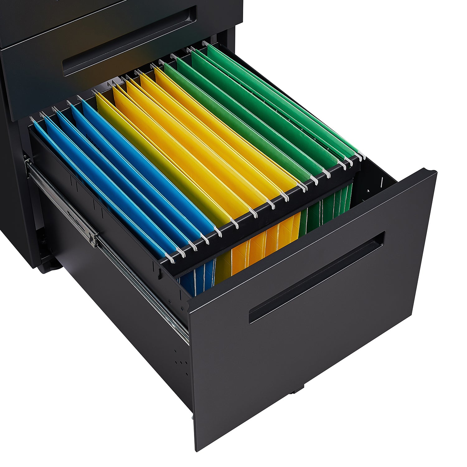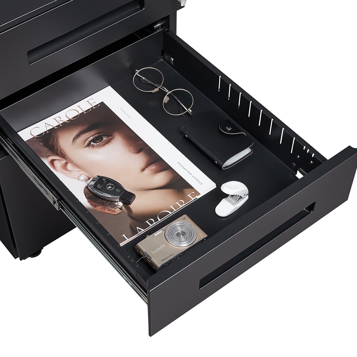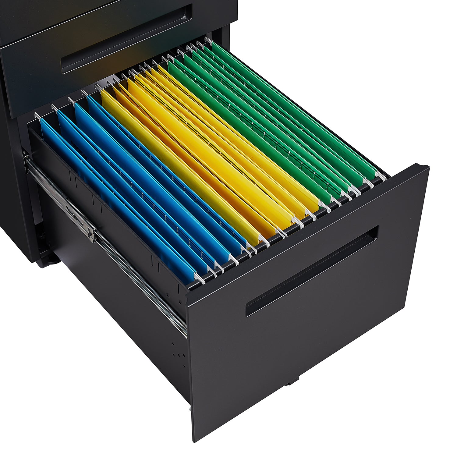 Black File Cabinet, 3 Drawer Mobile File Cabinet with Lock and Wheels, Under Desk Metal Filing Cabinet for Office,Lockable Rolling Cabinet with 2 Keys for Legal/Letter/A4 Size