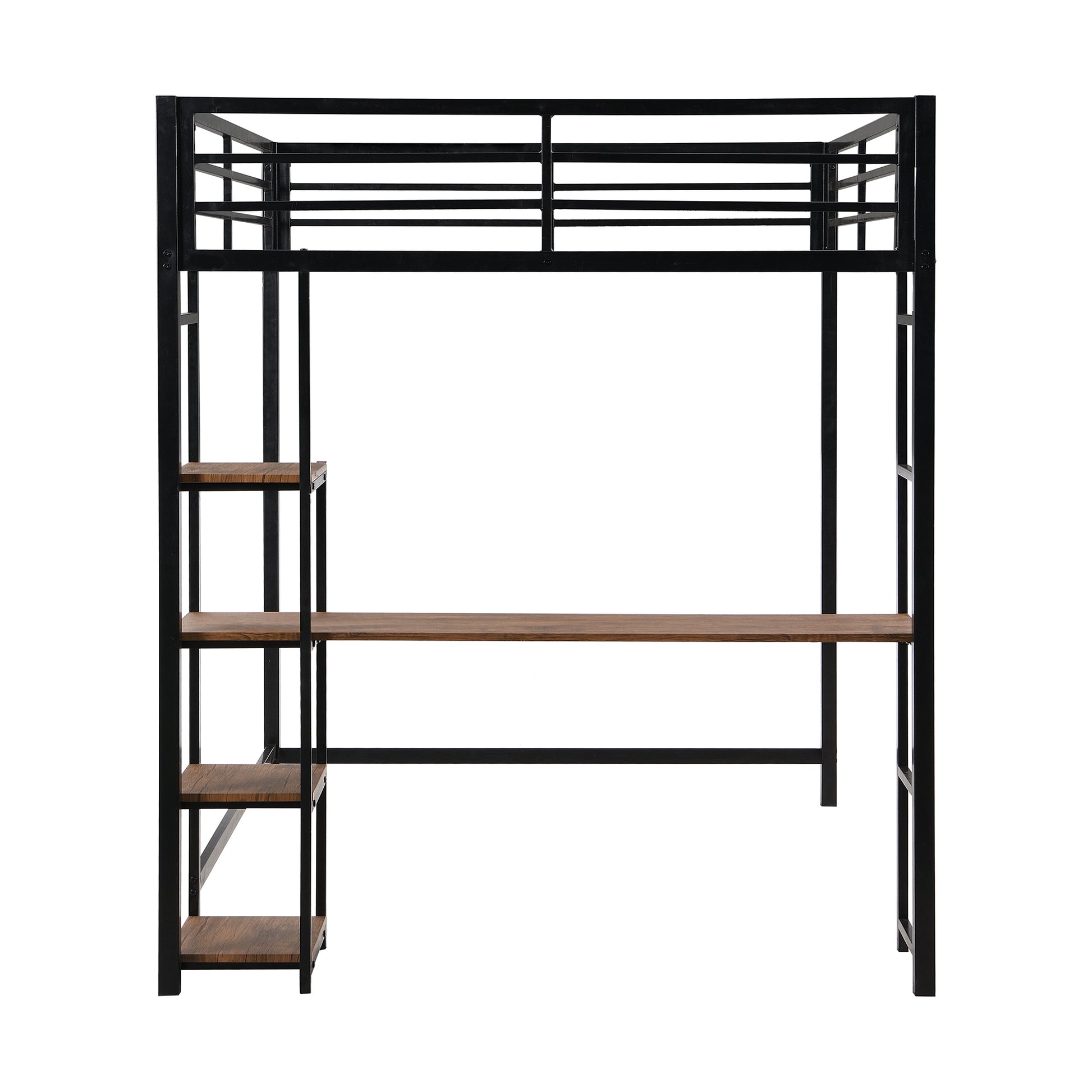 Modern and industrial, this loft bed with desk has the space-saving functionality you are looking for to maximize your bedroom. This loft bed is designed with a full-length metal desk surface, making it the ideal spot for you to do their personal works.The desk can be used to store study supplies or to give the room some personalized touches by adding some funky accessories.