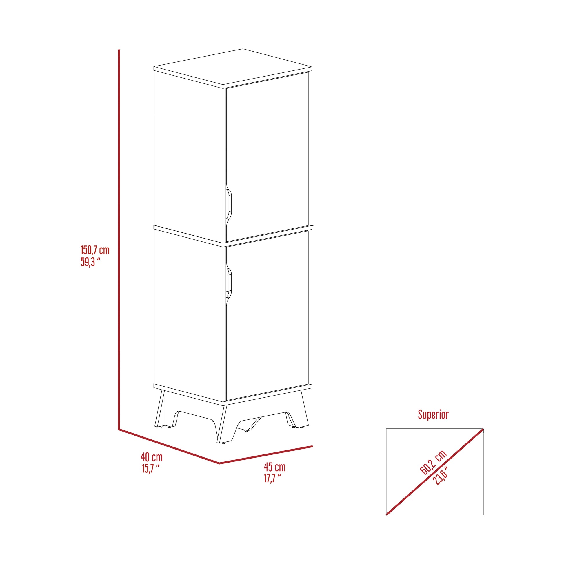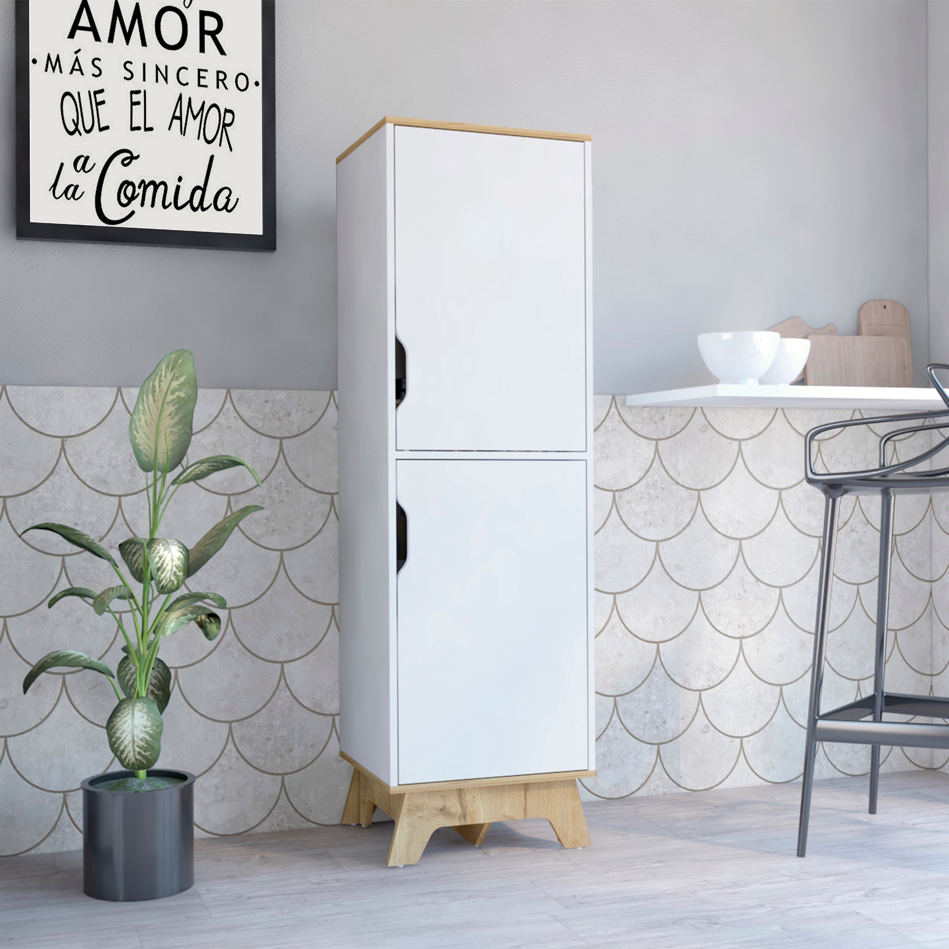 The TUHOME Pamplona Single Kitchen Pantry is the perfect way to add a little extra storage space to your kitchen with contemporary style. It includes four shelves (12,5''H X 16,6''W) perfect for storing all of your cooking supplies with Double Doors cabinets for more security; the design is static and safe for the wood base. Its size (59,3’’H X 17,7’’W X 15,7’’D) is perfect for any kitchen. Stylish with Light Oak-White manufactured wood.