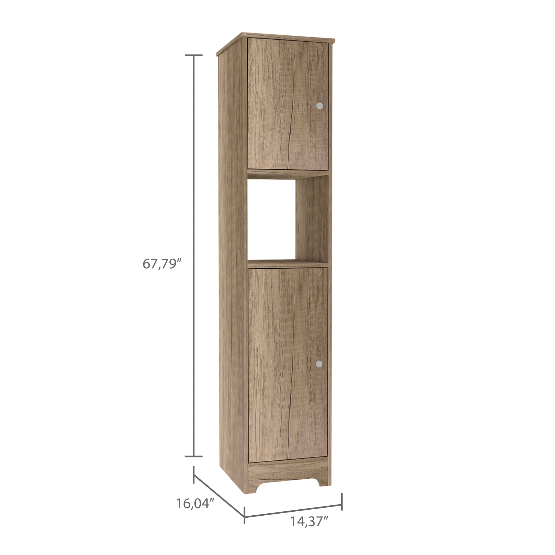 If you're looking for a cabinet that can help you organize your life, the Tuhome Ibis cabinet is perfect for you. With two cabinets (18,8''H X 12,36''W) and multiple interior shelves, this piece provides plenty of concealed storage space to hide away all your clutter. Plus, the open shelf (13,26''H X 12,36''W) makes it easy to grab whatever you need in a hurry. At 67" high, this cabinet is sure to add some elegance to any room while helping you get your life in order. Elegant light oak manufactured wood finish, with ideal size (14,37''W X 16,04''D X 67,79''H)