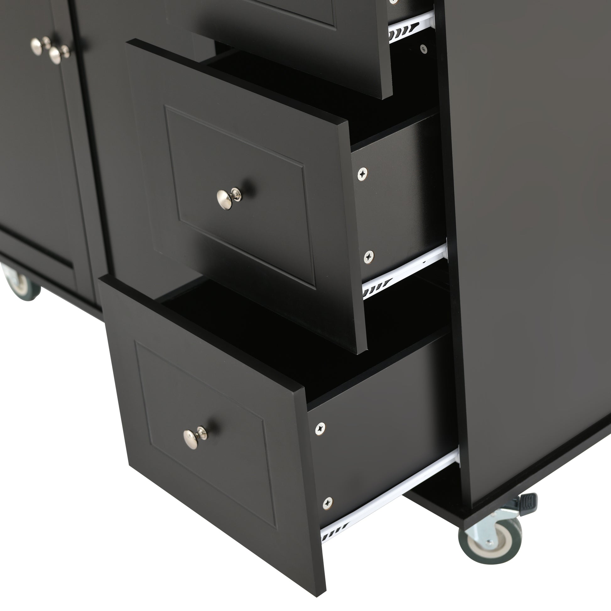 - - [LOCKING WHEELS] The island features two locking wheels that ensure stability and prevent it from moving while in use.