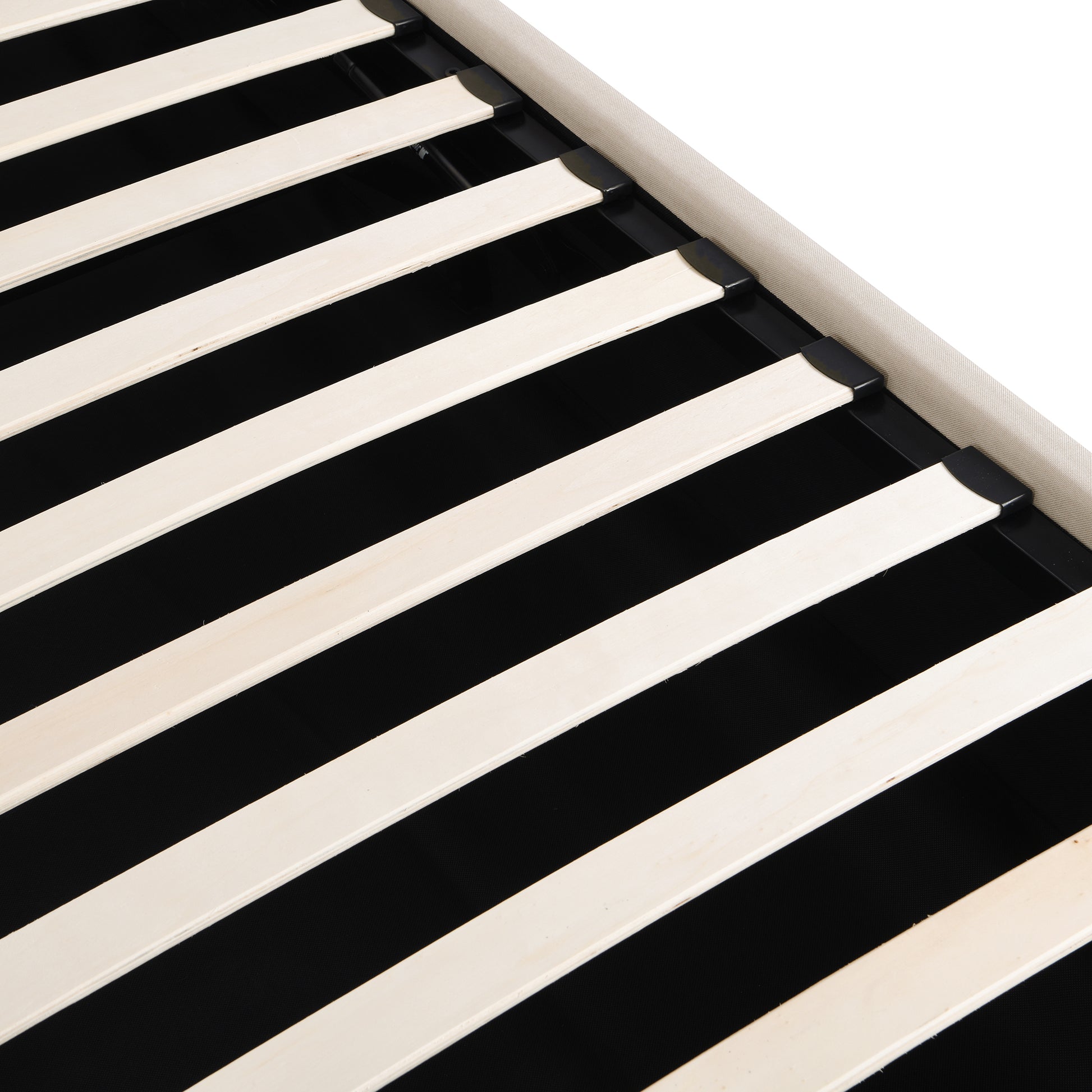 [No Box Spring required] With 24 reinforced slats, the mattress (not included) will be well supported and your body weight will be evenly distributed for a great sleeping experience. Enjoy the convenience and unparalleled ease of use that this queen size wood platform bed provides. Headboard is included as a comfy linen fabric backrest that brings you and your partner a cozy feeling.