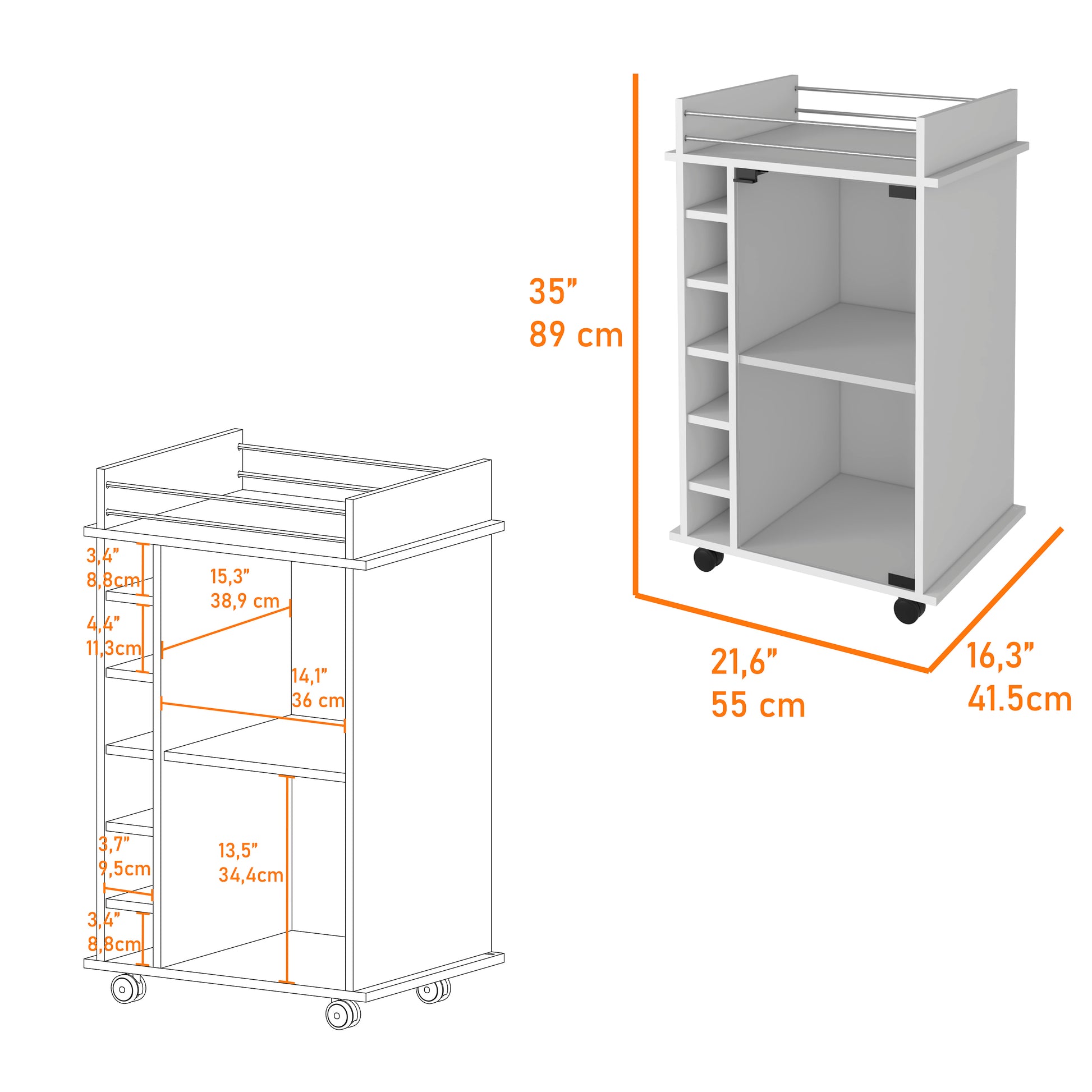 Set includes | One (1) bar cart |