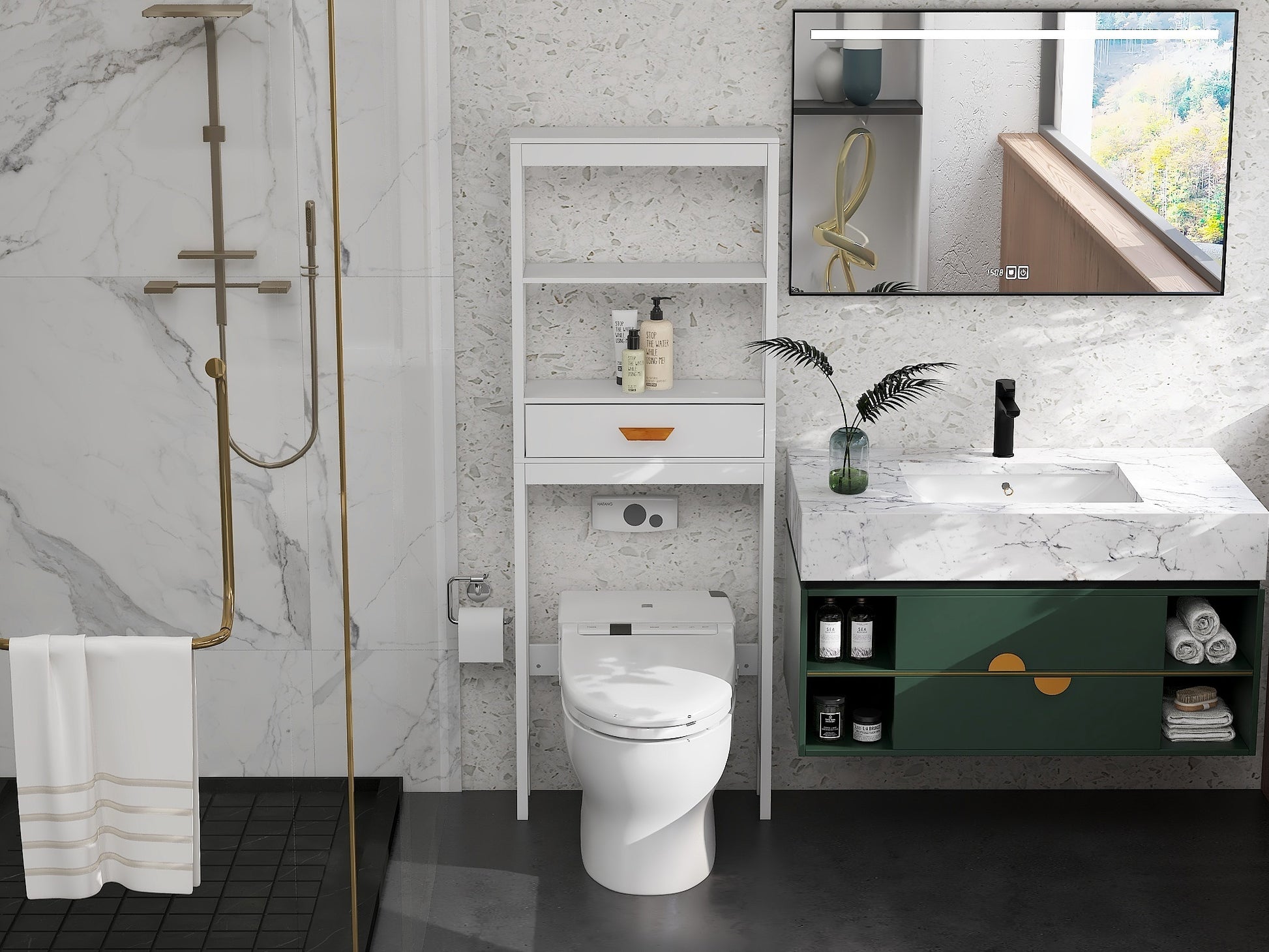 - Bathroom Space Saver: One drawer and two open shelves to allow storage of bath essentials like soaps, shampoos, body wash and bath towel, toiletries, toilet seat.