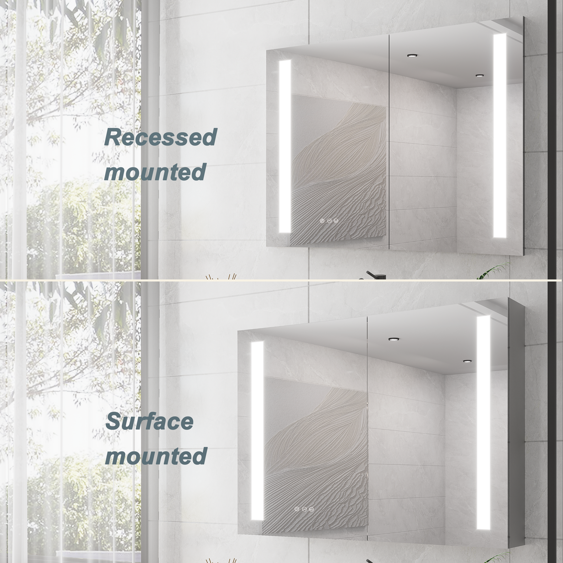 Double door mirror cabinet (2-in-1: embedded&wall mounted)