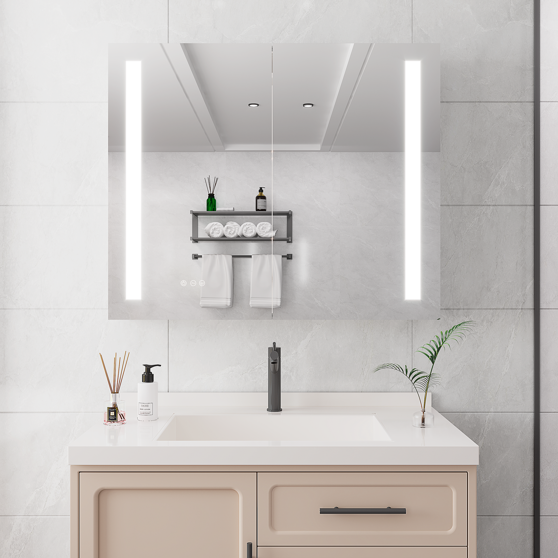 There are three touch switches for this cabinet, which control the main light, the anti-fog function respectively, the brightness adjustment and color temperature adjustment of the lighting. The independent control function allows users to easily know how to use it.