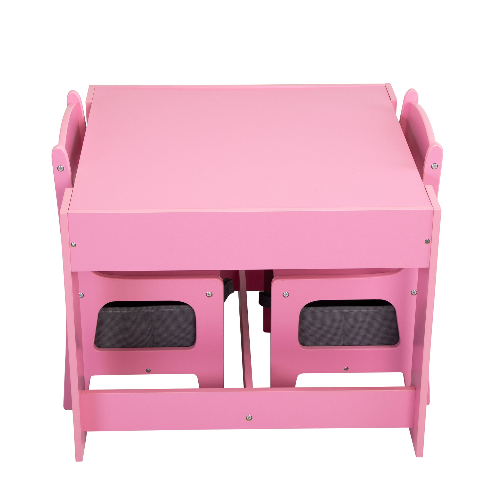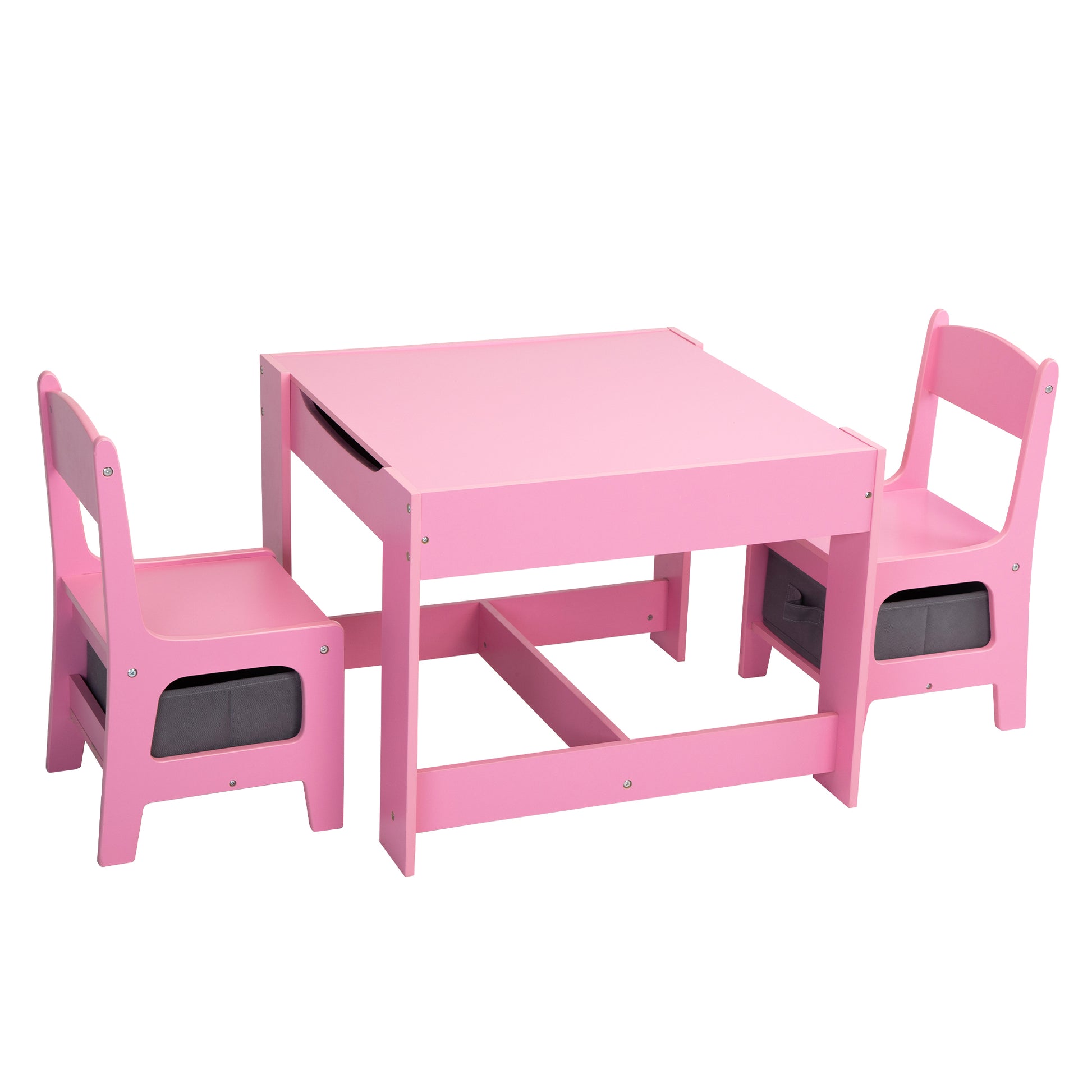 3-in-1 Kids Wood Table and 2 Chairs - Pink