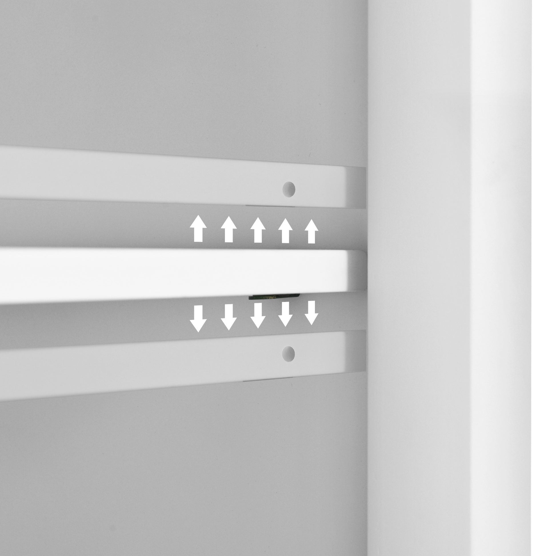 Two storage drawers and adjustable shelve accommodate a variety of kitchen items.You can put small kitchen appliances and tableware into the cabinet and drawers to make your kitchen more neat and organized. Includes a towel rack and a spice rack to keep your desk tidy.