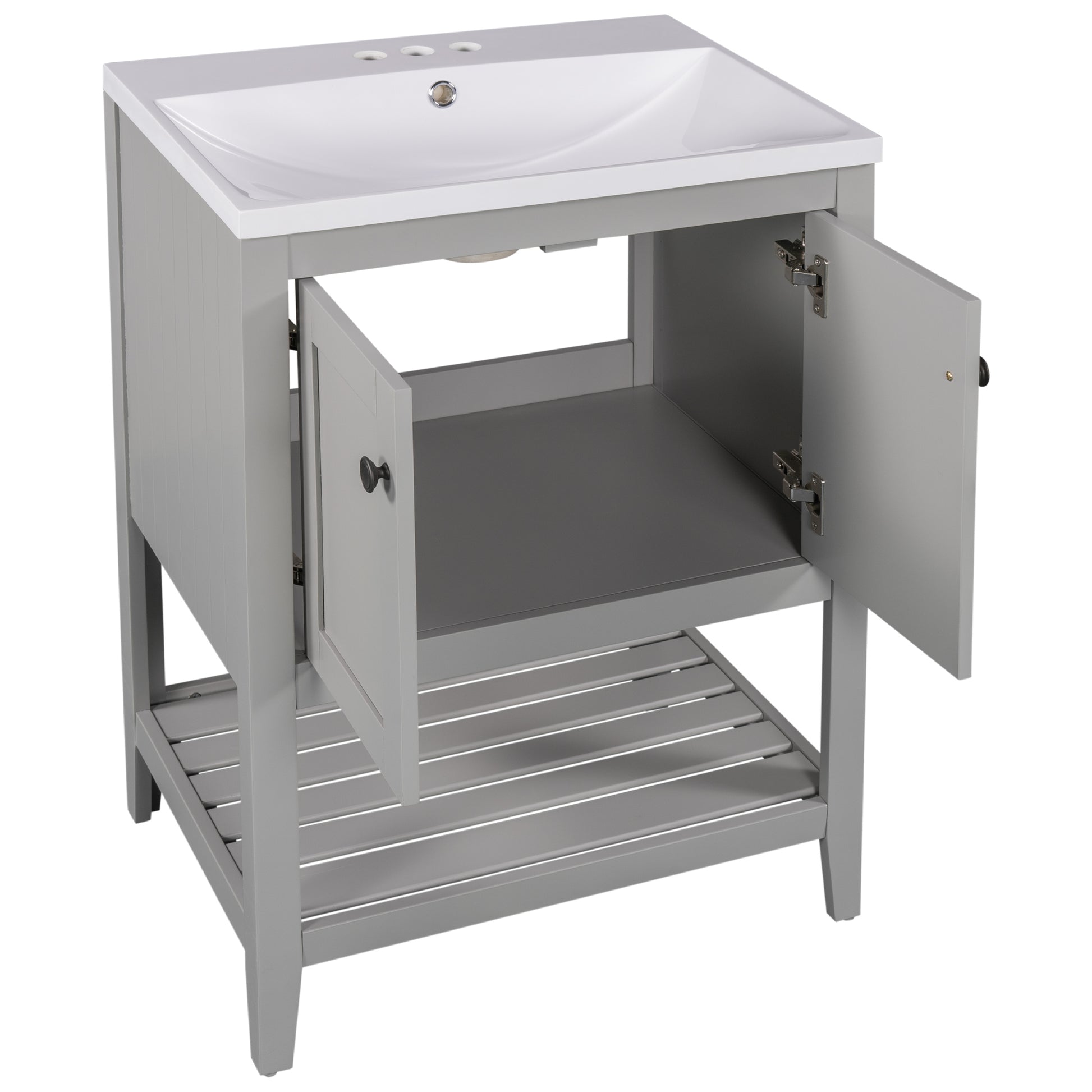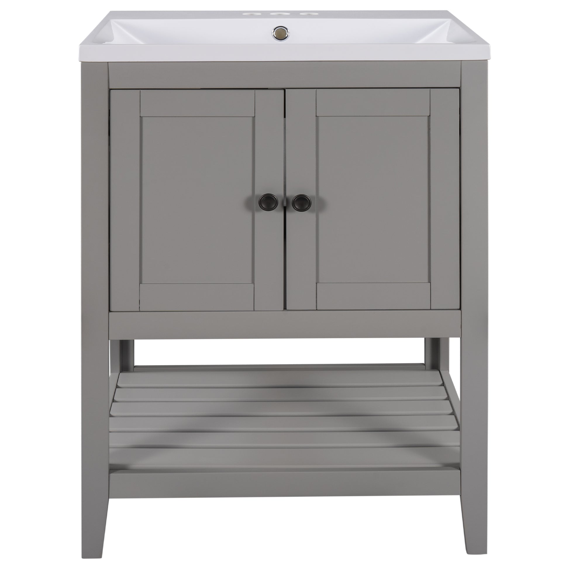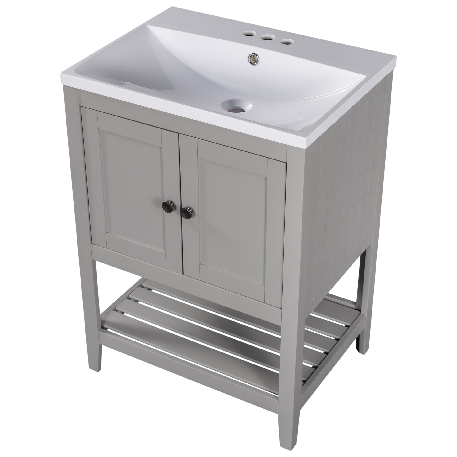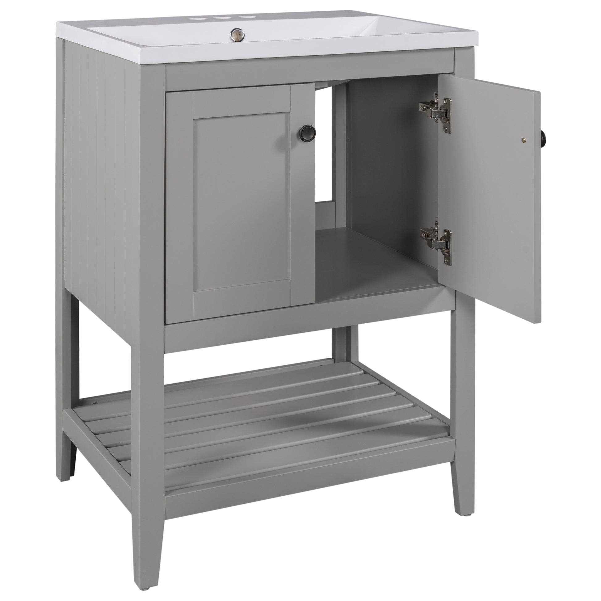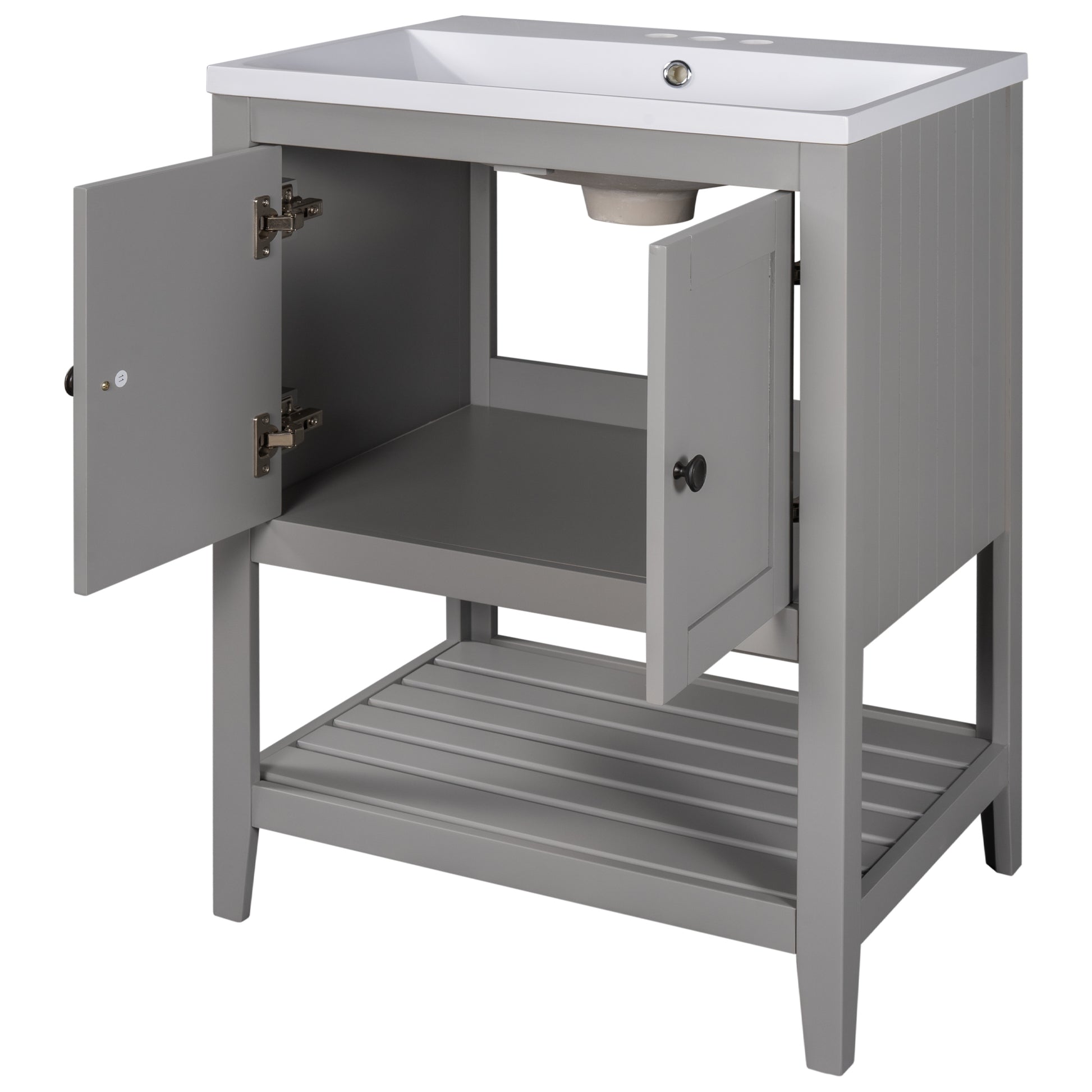 - ★Ample Storage Space: This simple and practical design freestanding bathroom vanity features a cabinet and an open style shelf for storing bathroom essentials. Both the cabinet and the open bottom shelf are spacious, and both offer enough space to most necessities used in bathroom. The open bottom shelf is a perfect place to accommodate bath stuff such as shampoos or towels.
