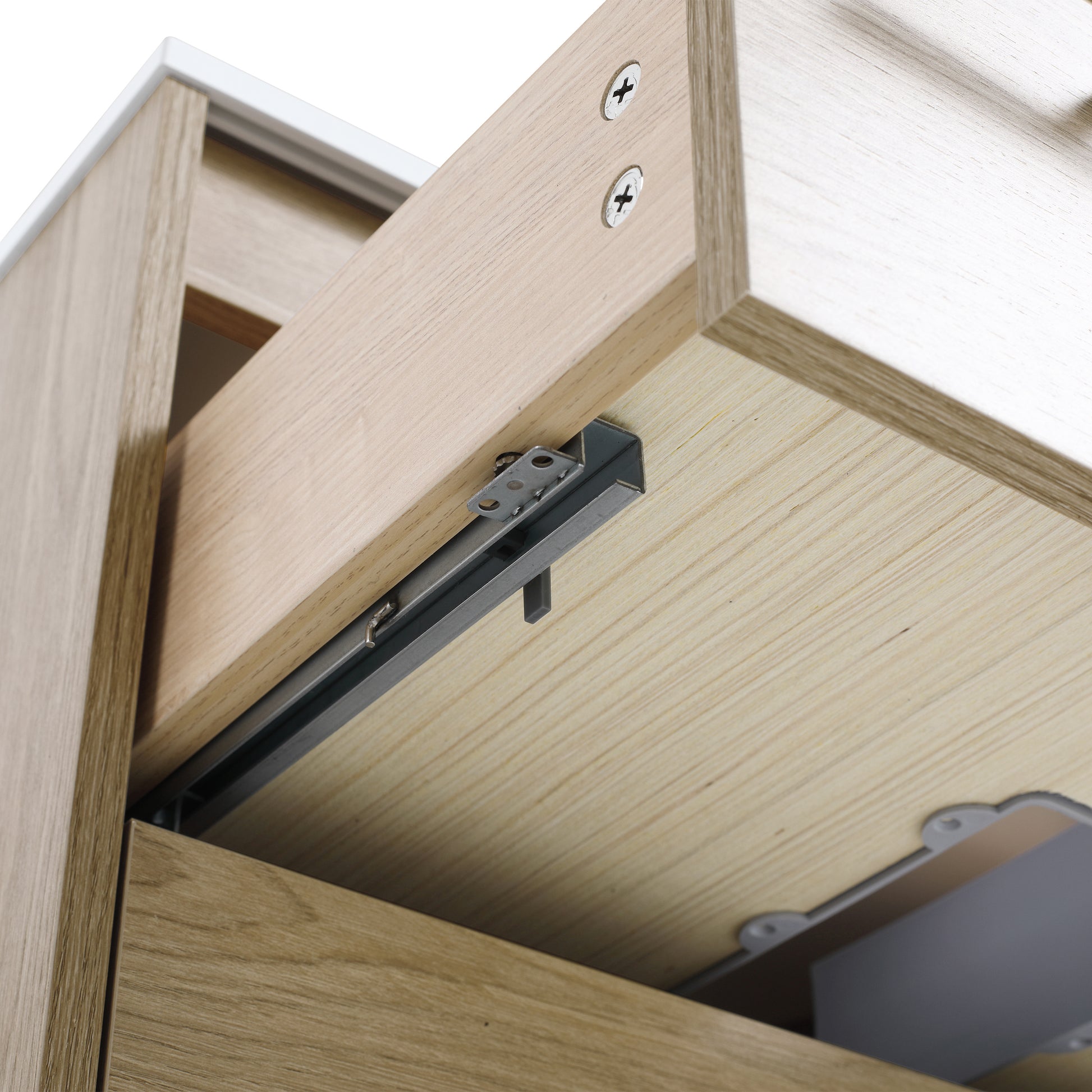 In order to better conform to North American lifestyle habits and optimize storage space, two drawers with a soft close 2/3 extended drawer slide have been added to the product design.