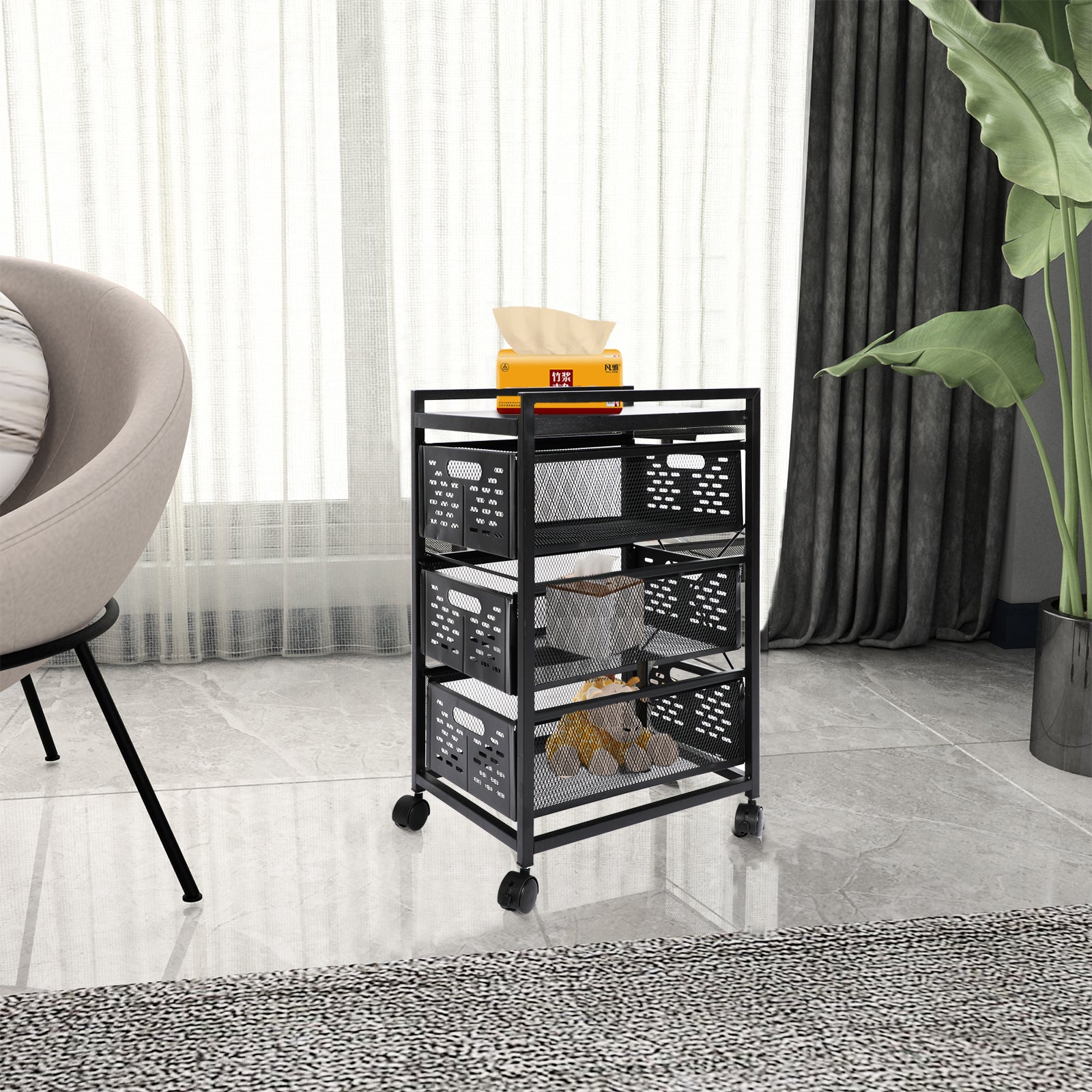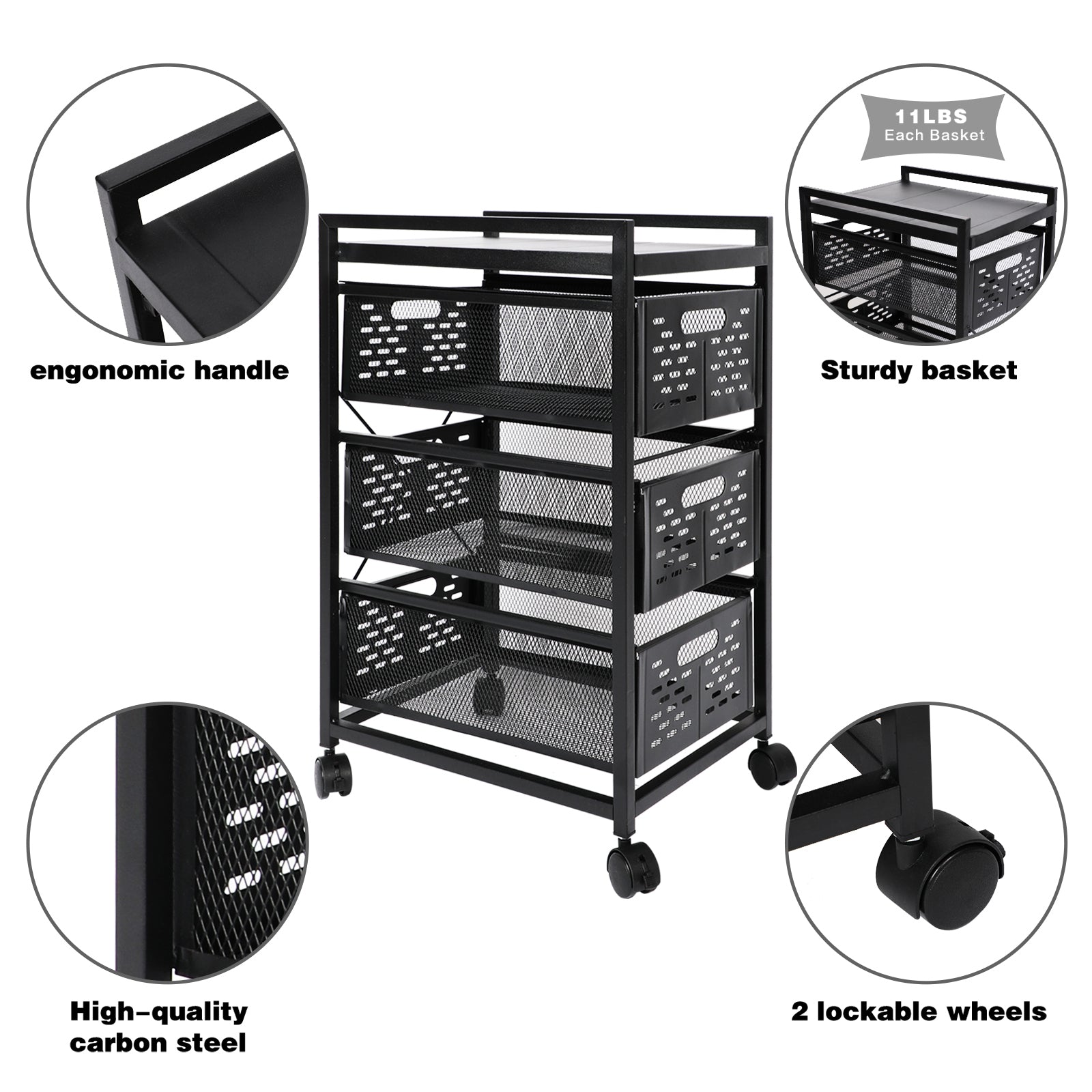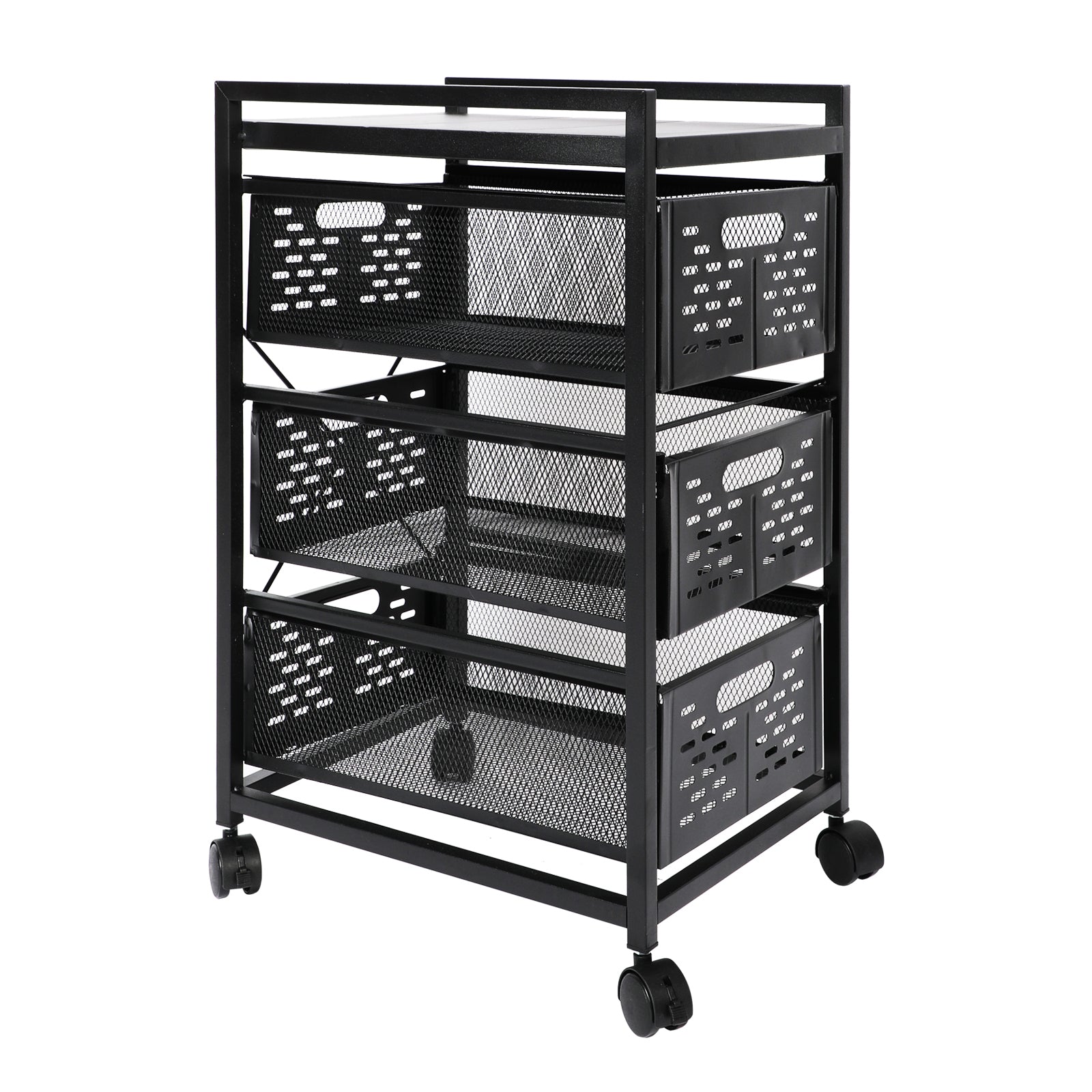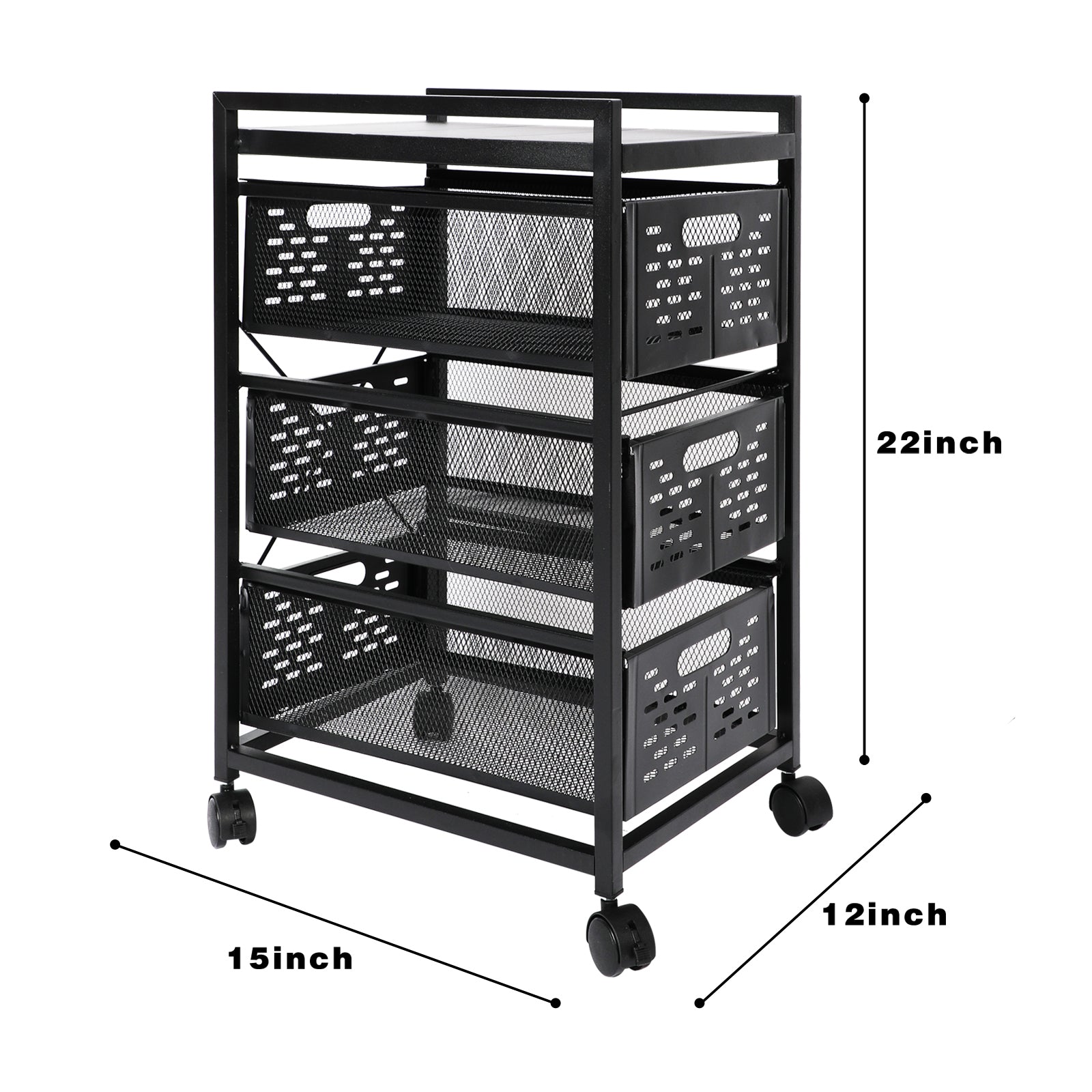 Metal [STURDY STEEL DESIGN] Manufactured with strong, thick, commercial-grade steel, the cart is designed to endure years of heavy, repetitive use. [MULTI-FUNCTIONAL DESIGN] This Mesh 3 Drawer Rolling File Cart transforms your messy desk into a clutter-free, organized workspace. Cart includes a large drawer for hanging file folders and two smaller drawers for reams of paper, binders and supplies. [LONG-LASTING DURABILITY] The powder coat finish blends perfectly with most office decor and helps resist chipping or scratching while the mesh design gives it a contemporary appearance. Ideal for use in offices, mail-rooms, cubicles, classrooms, dorm rooms and libraries. [MOBILE CONVENIENCE] Four swivel wheels lets you easily move files and supplies between offices, conference rooms and meeting areas. Two wheels lock to keep the cart in place. [COMPACT STORAGE SOLUTIONS] Overall product dimensions: 15"W x 12"D x 22”H, offering a small footprint with big storage potential.