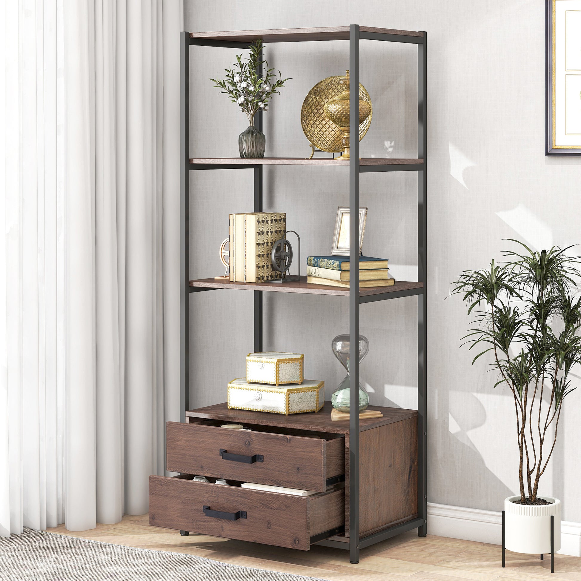 - Multipurpose Bookshelf: This bookcase has 4 open storage shelves and two drawers. Open storage shelves design provides perfect platforms for displaying your decorations like family photos, novels, speakers or plants, ideal for your bedroom, living room, kitchen or office.