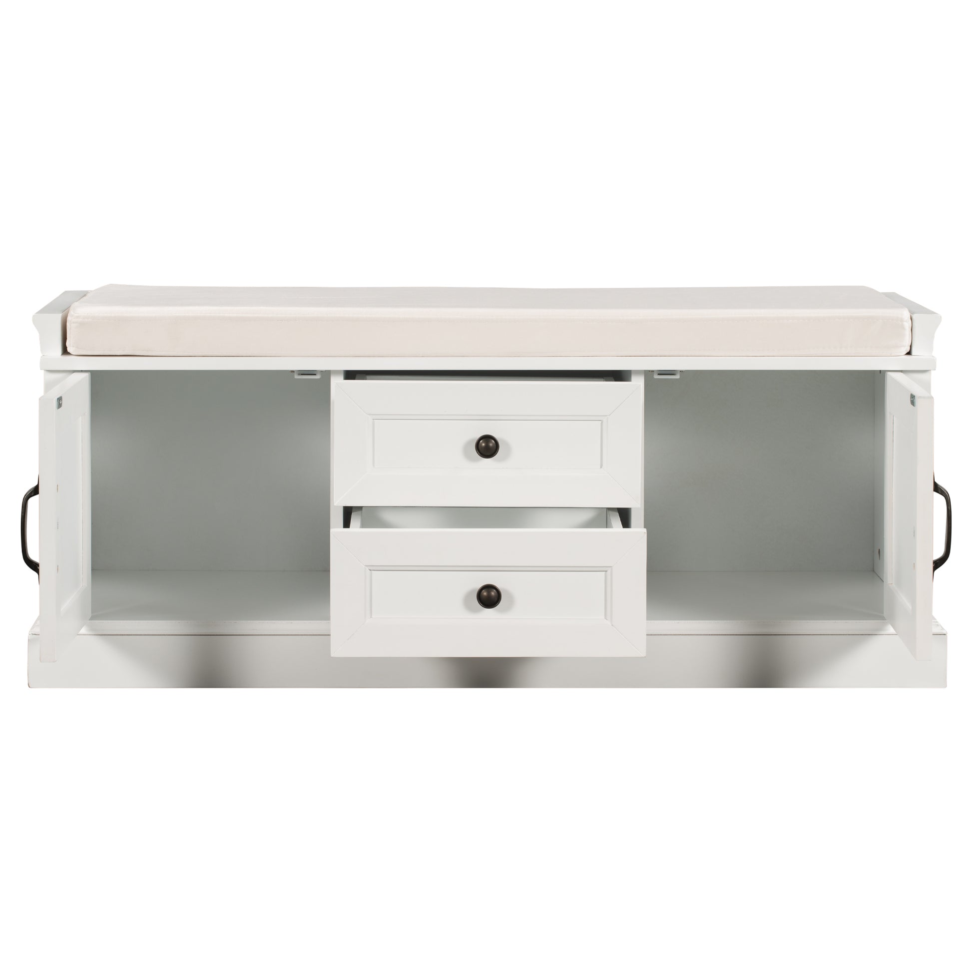 Stash Storage Bench with 2 Drawers and 2 Cabinets - White