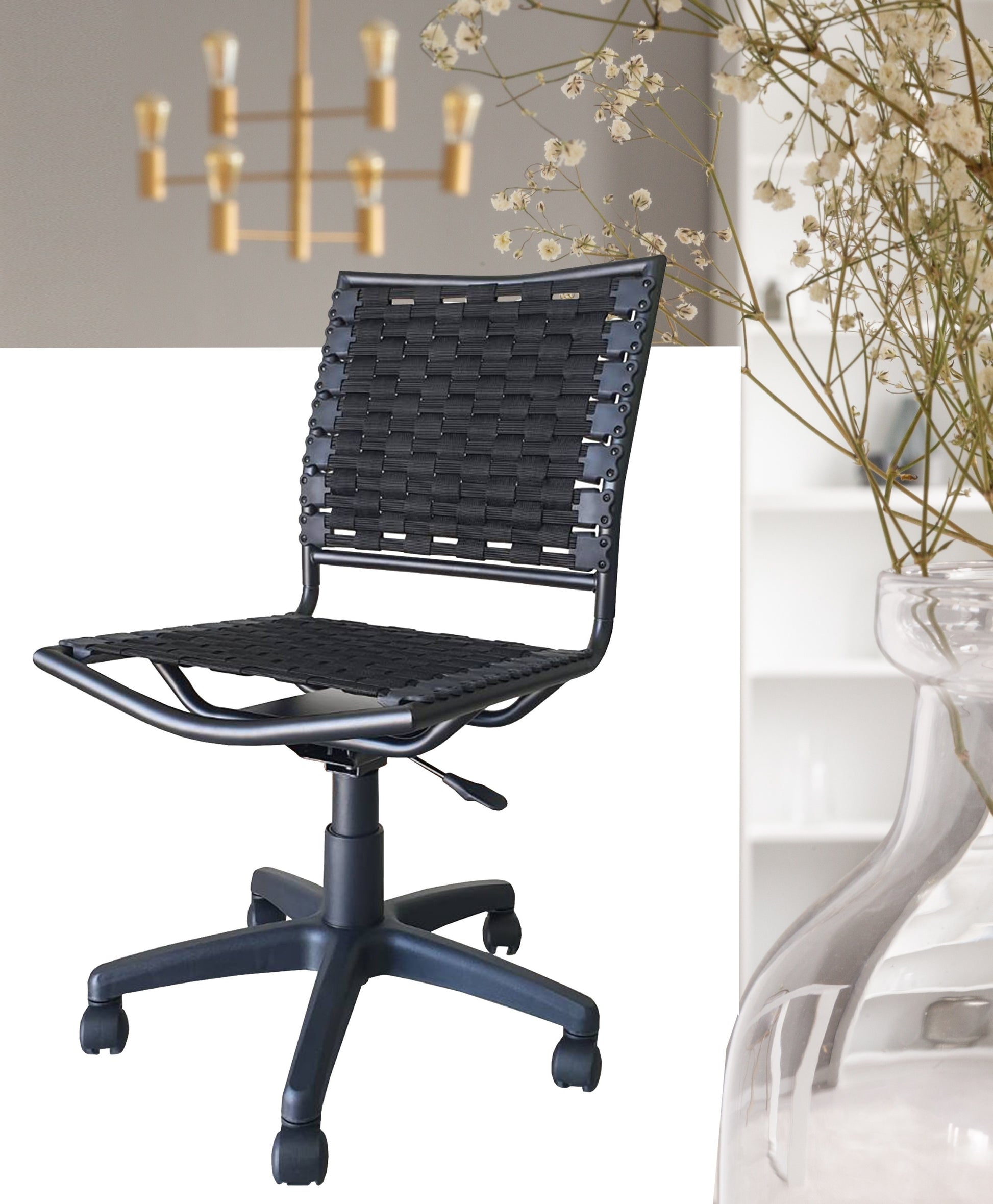 This unique bungee chair without an arm is made from flat bungee bands and black PP ribbons for strong and longer durability of the product, its a very comfortable chair for your body and keeps the airflow moving so its ergonomic during long hours of seating. The design is contemporary styling to create an ergonomic experience for the home office.