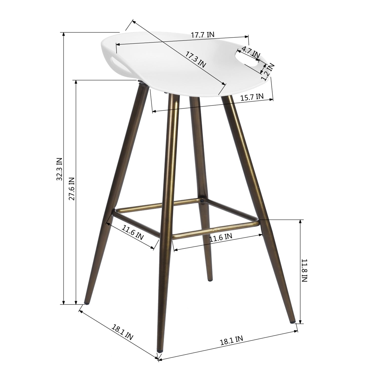- [HIGH-QUALITY SET OF 2 HIGH BAR STOOLS]: High quality PP seat is wear-resistant, anti-scratch, anti-dirty, easy to clean and hard to damage. The super strong iron legs have a powerful hardness to bear up to 400 lbs. Adopted the anti-dropping electroplating technology to protect metal legs from rusts or tarnishes, offer a long-lasting service life span. Seat Height 27.6'', Seat Area: 15.7''(W) x 17.3''(D)