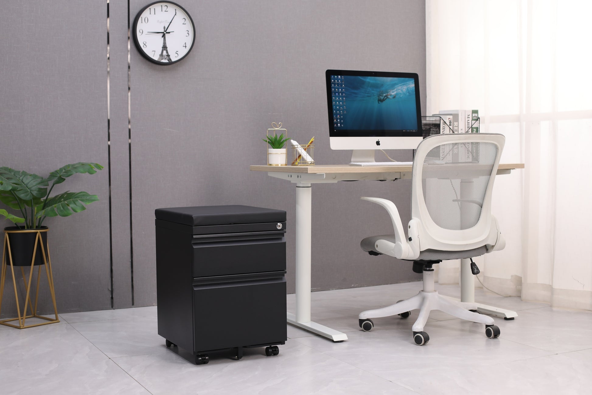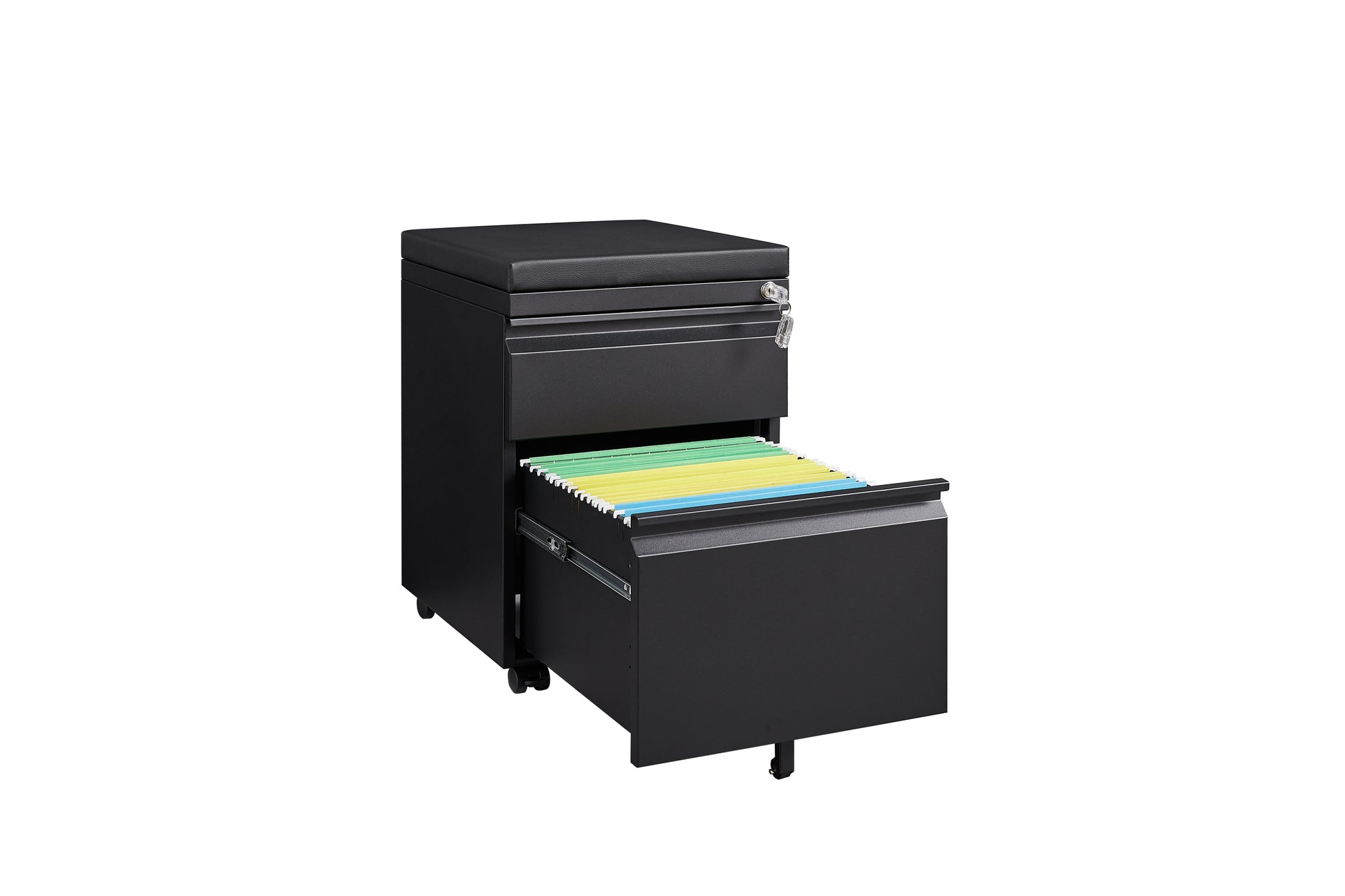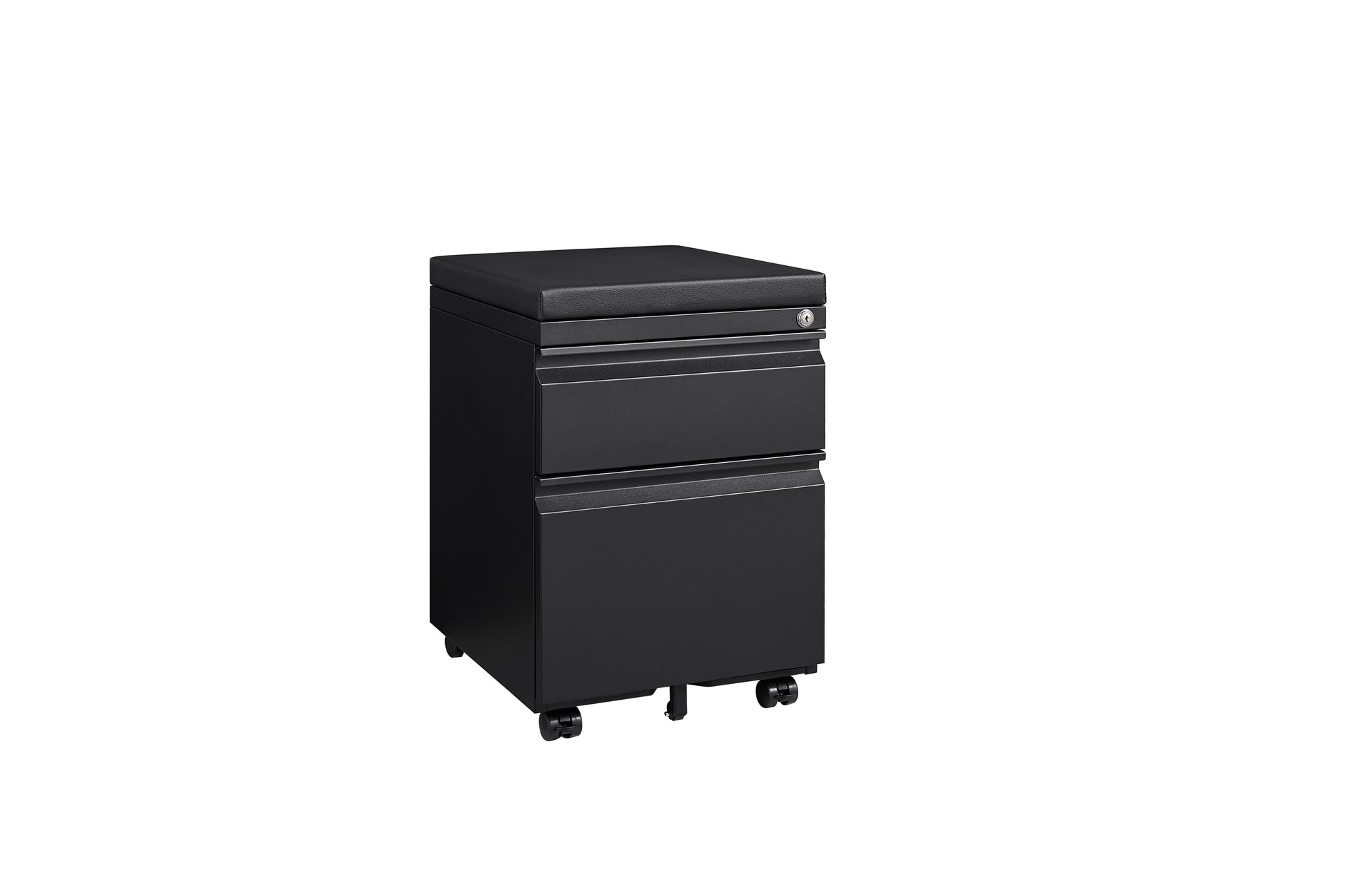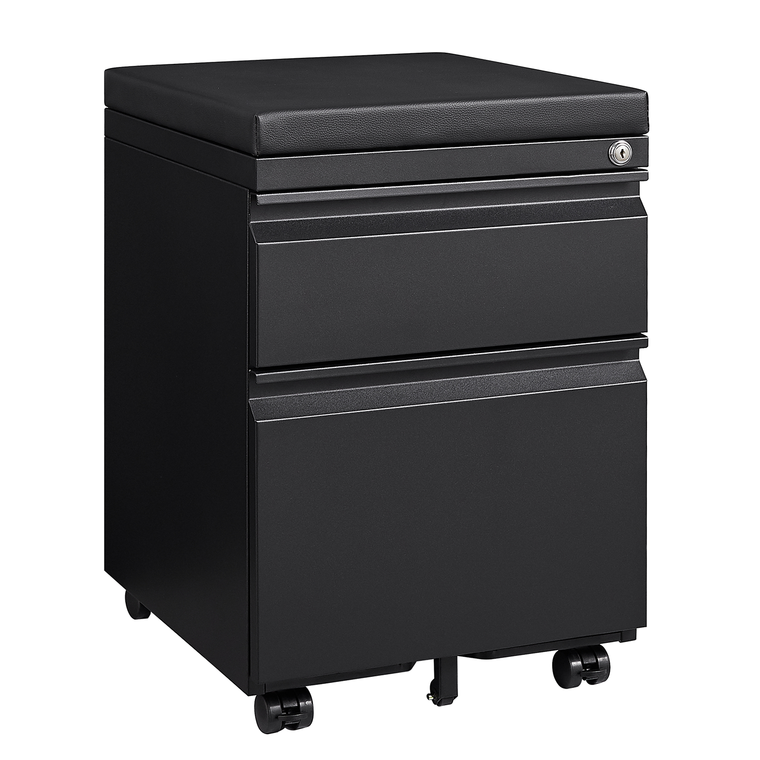 Mobile File Cabinet 2-Drawer Pedestal with Lock for Storage Use for Home Office and Business Enterprise,Legal/Letter Size Black,With 5 Wheels,with Leather cushion