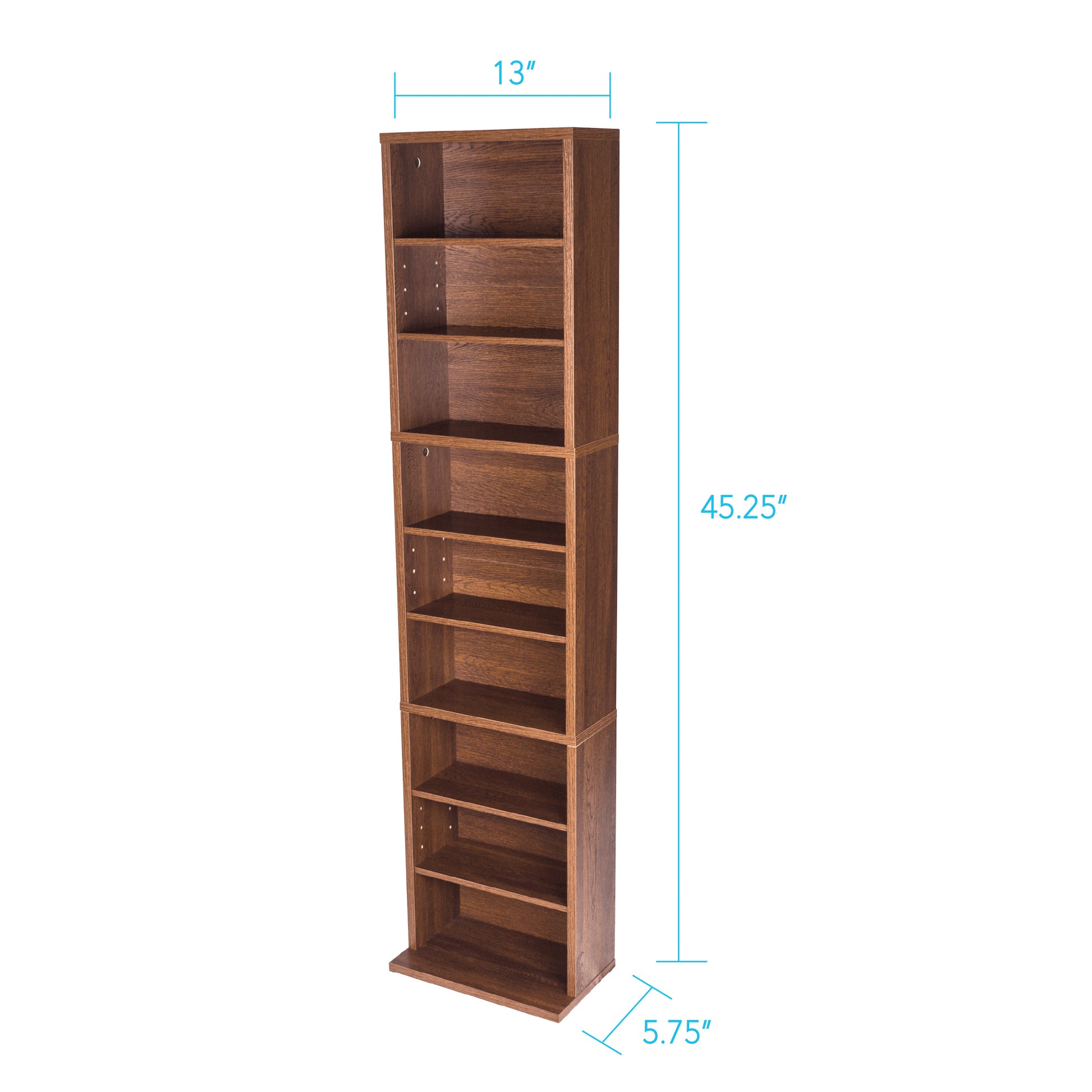 There’s no one better to decide the arrangement of your shelves than—yourself. 6 of the Atlantic Herrin’s 9 are height-adjustable, meaning your media display and storage is customizable to your needs. At 4-and-a-half feet high, you can stow hundreds of CDs, DVDs, Blu-rays, and games, in addition to any other cherished items you want to display. A warm, rich chestnut finish and slender profile are the icing on the cake.