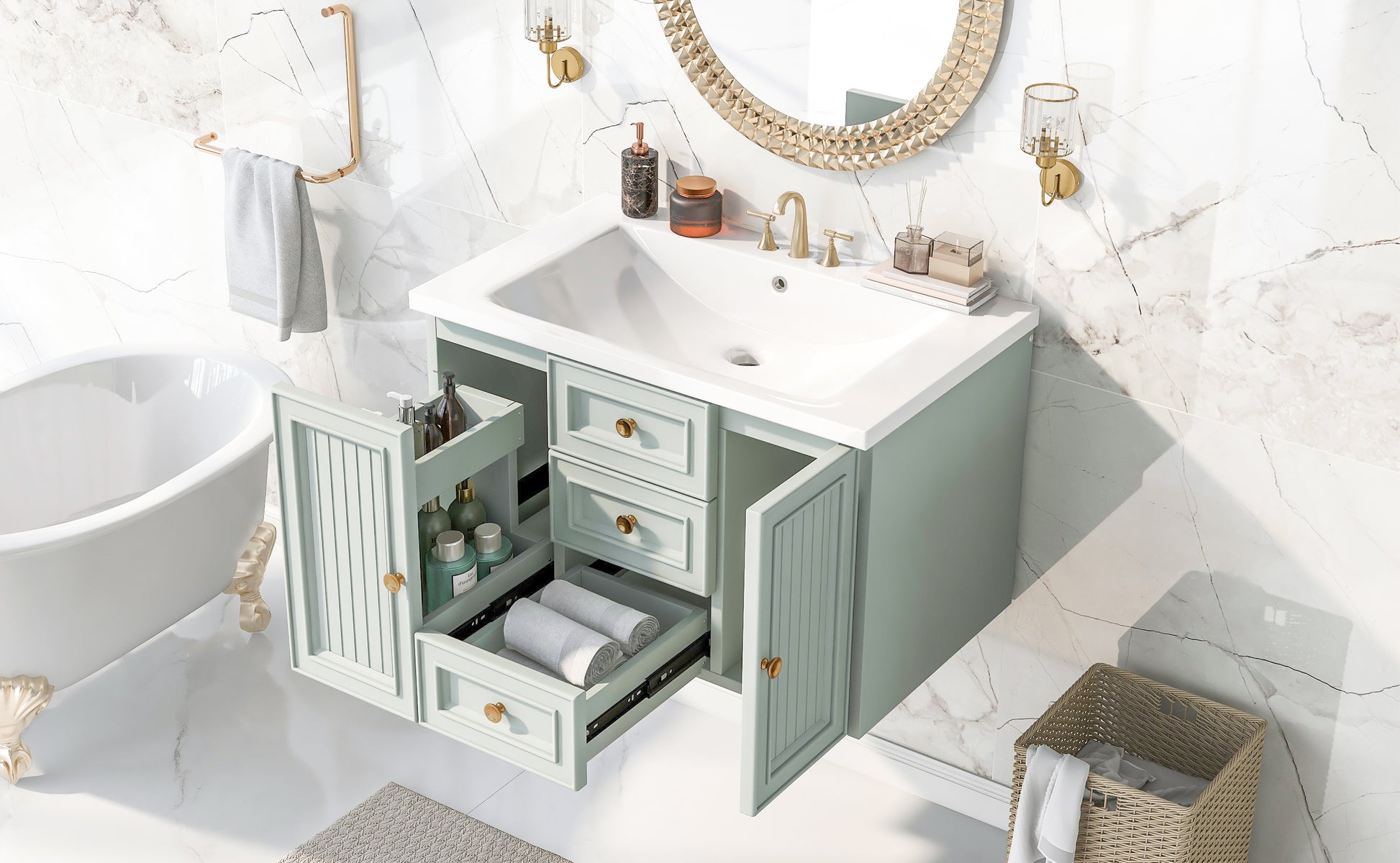 1. Wall Mount 30" Bathroom Vanity with Sink