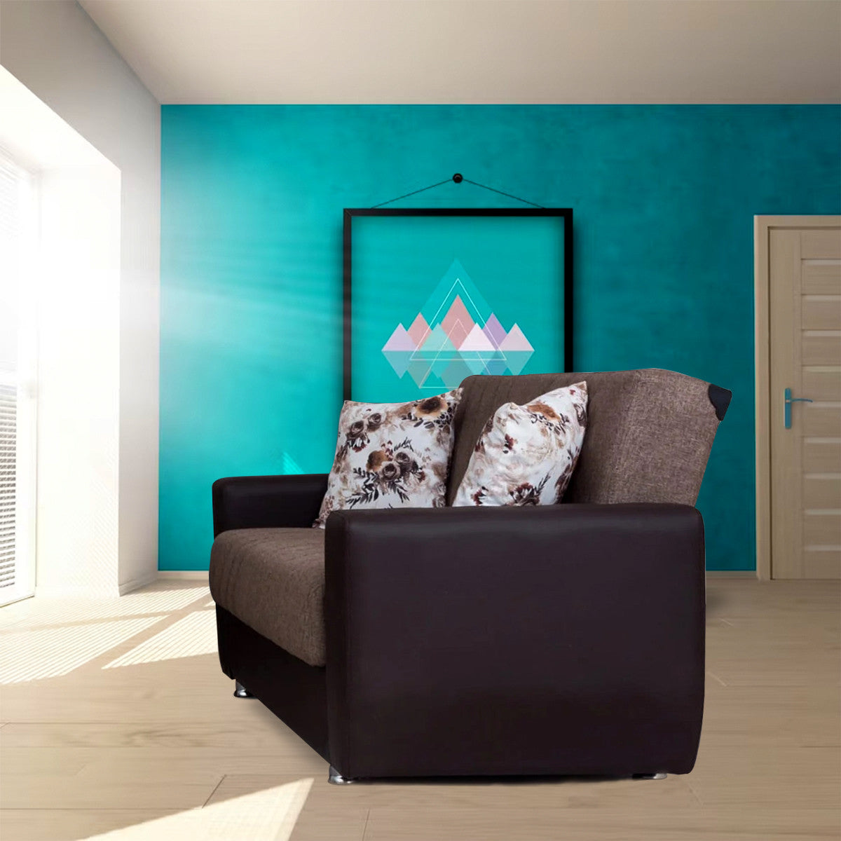 Duaa Light Brown Fabric w-Brown PU Leather Loveseat