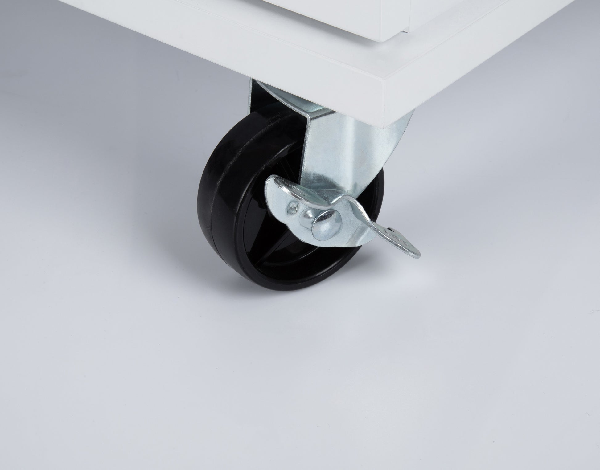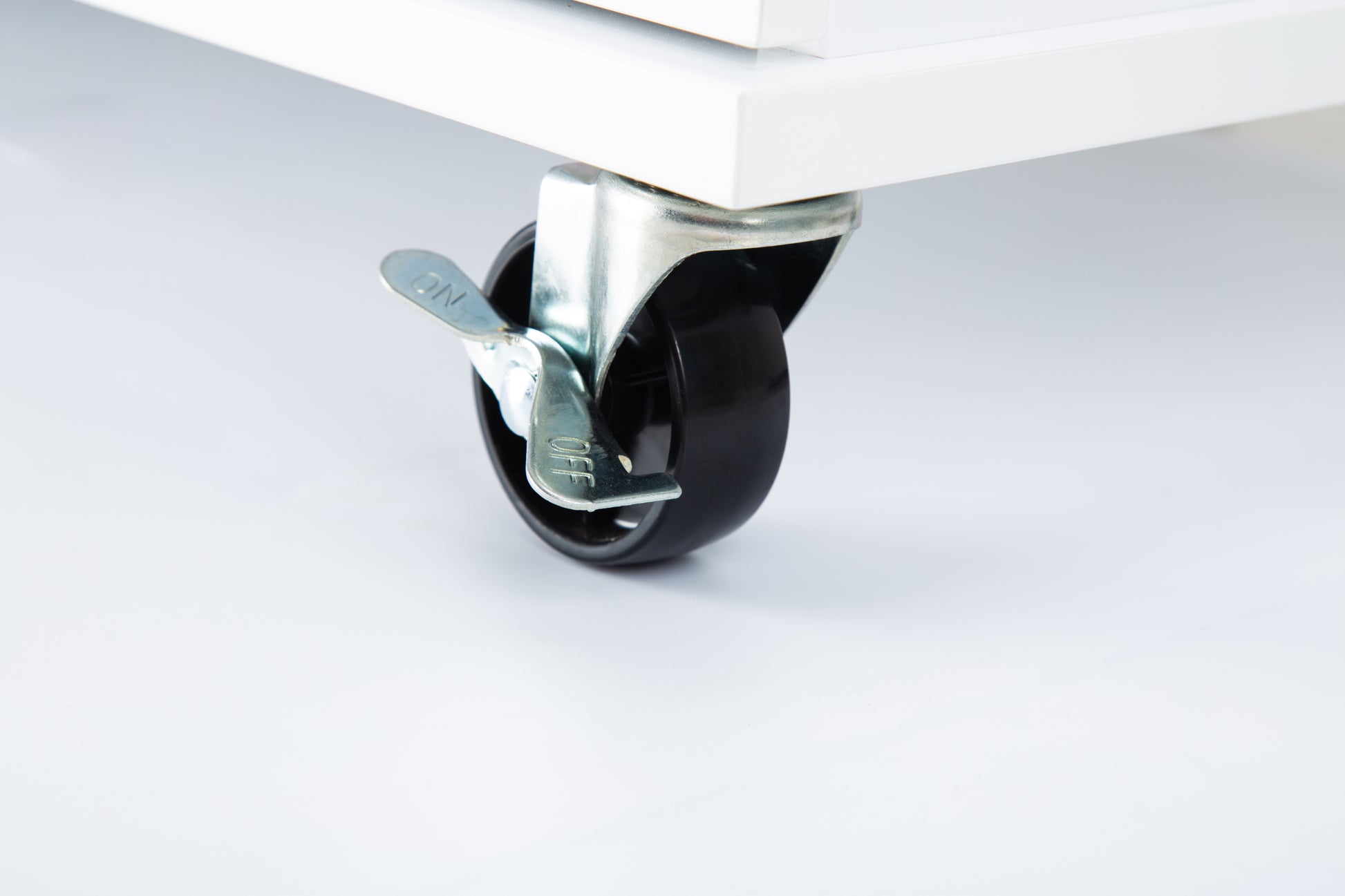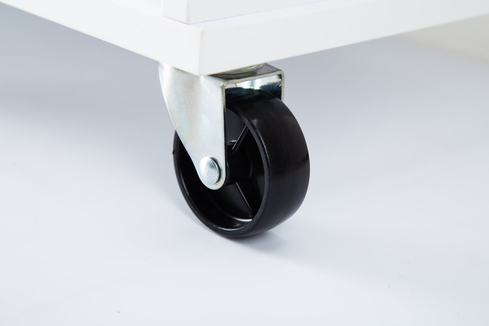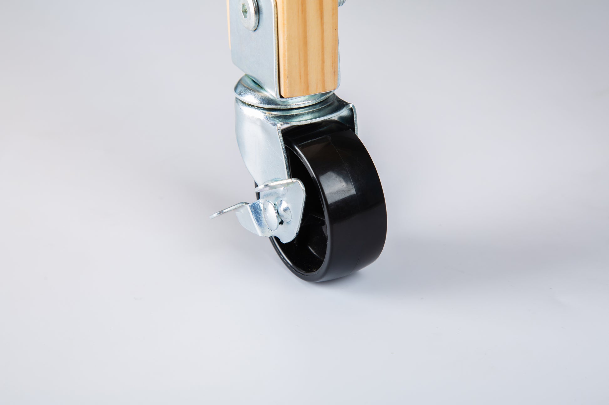 Rollable rubber wheels, two can be locked, flexible and stable.