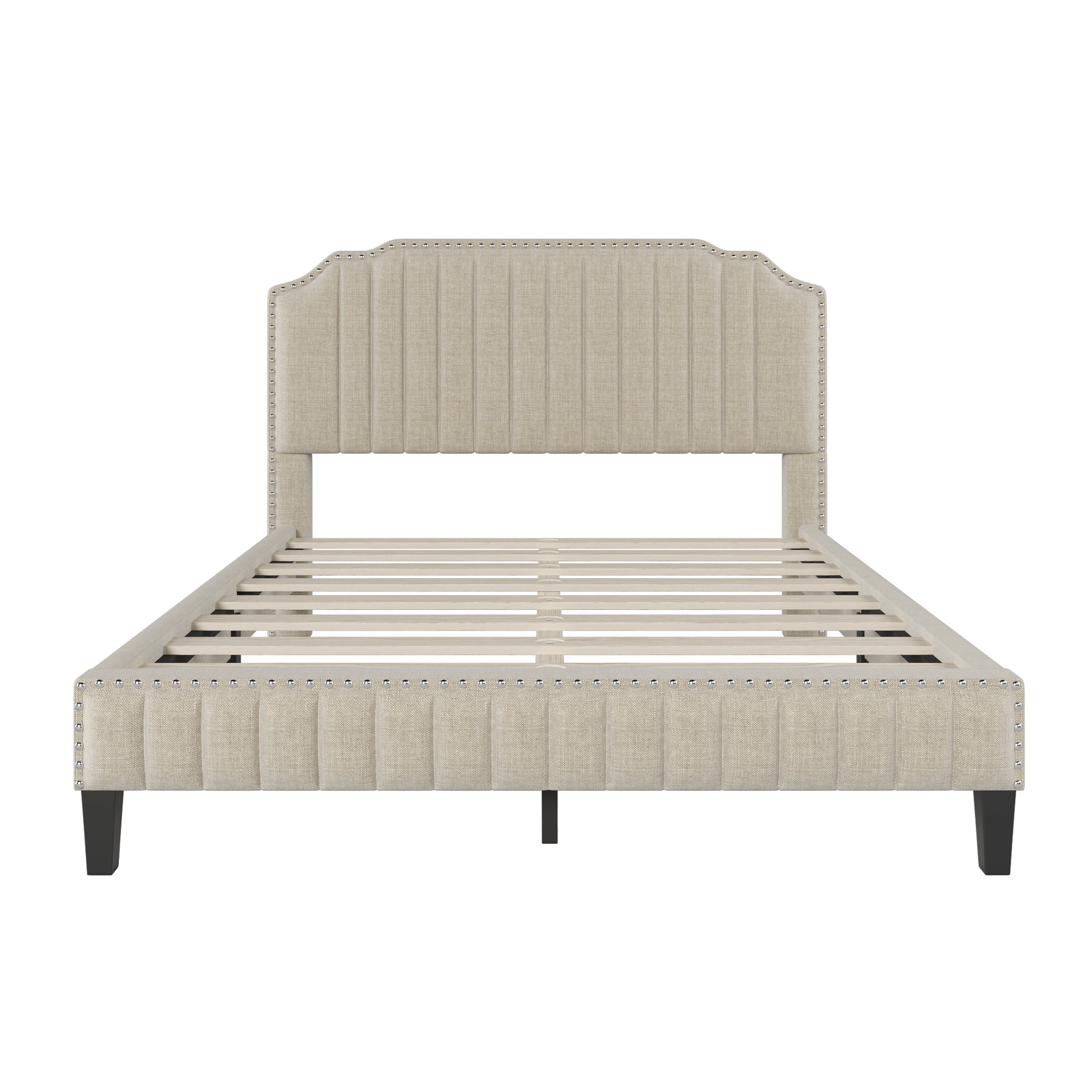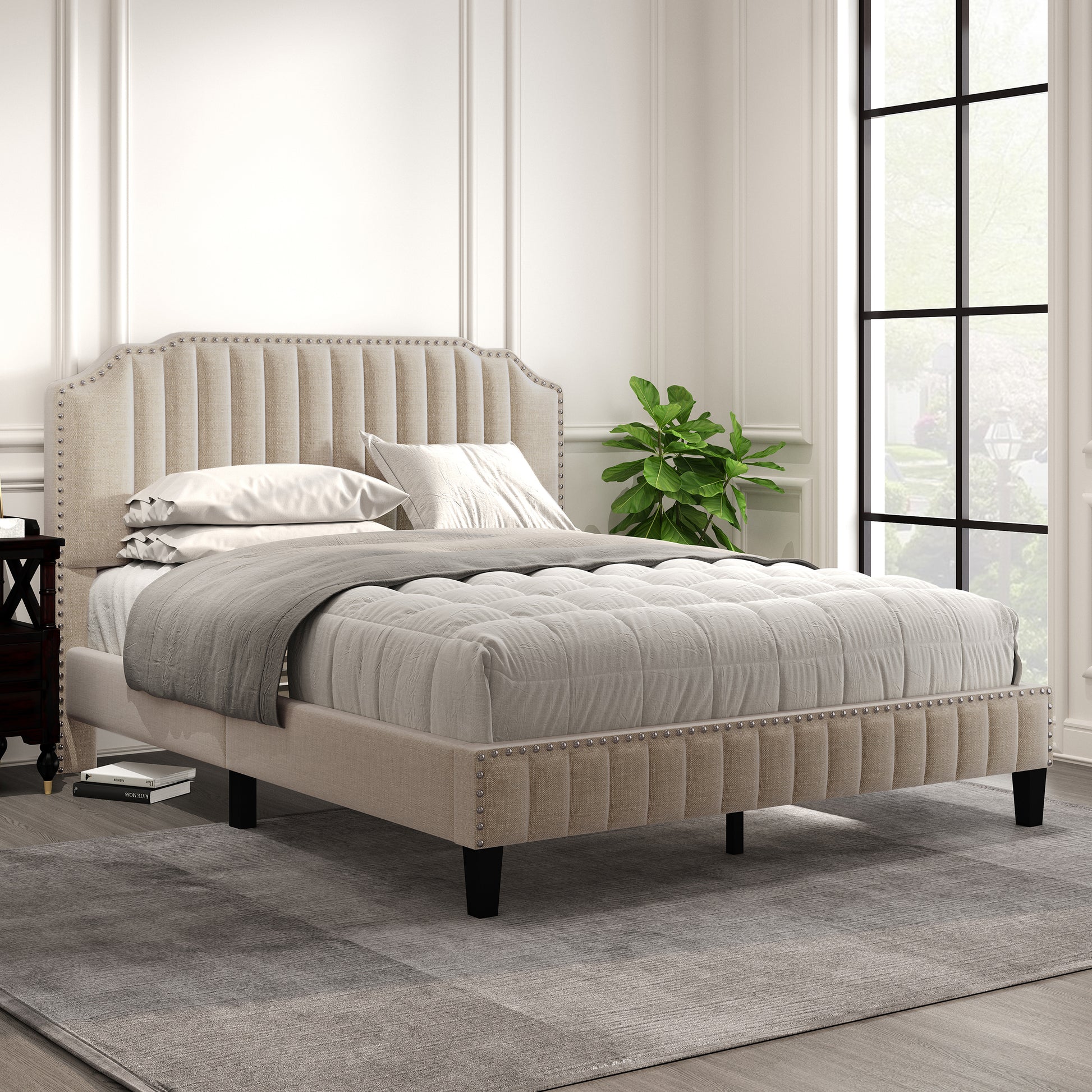 A new headboard is a simple way to easily update your ensemble. This stylish headboard is the ideal choice if you want to create a glossy appearance. Upholstered with high quality soft-to-touch linen fabric and graced with on-trend vertical channel-stitched creating timeless elegance that enhances your bedroom style. The thickly and comfortable foam-padded headboard cradles you to sleep as well as provides the ideal backrest position for you to watch a movie or read. Wooden front footboard legs gives a sleek silhouette make this bed frame an extraordinary addition to a modern bedroom. Bed frame is available in Full, Queen and King size.