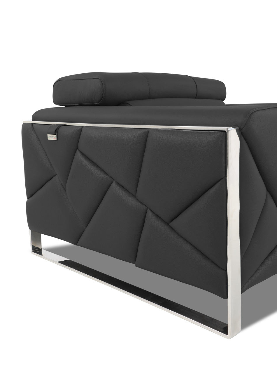 Introducing our exquisite Top Grain Italian Leather Loveseat, a perfect blend of sophistication and indulgent comfort. This loveseat boasts a sleek and low-profile design that maximizes the view plane, and the adjustable headrests offer additional support and customizable neck comfort. With a state-of-the-art Japanese ratchet system, you can easily find the ideal position for relaxation. The architecturally designed chrome legs add a touch of modern elegance.
